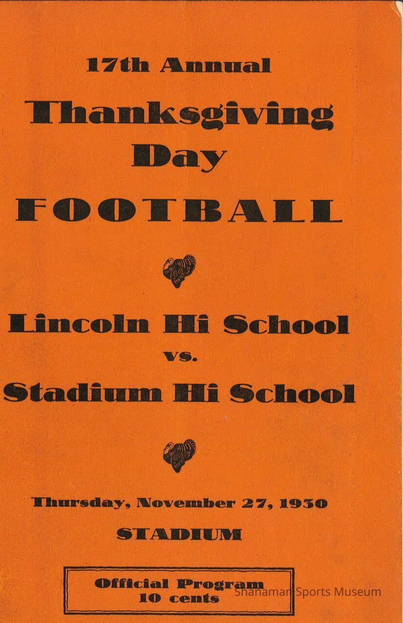 Program- 17th Annual Thanksgiving Day Football, Staduim High School vs. Lincoln High School, November 27, 1930.