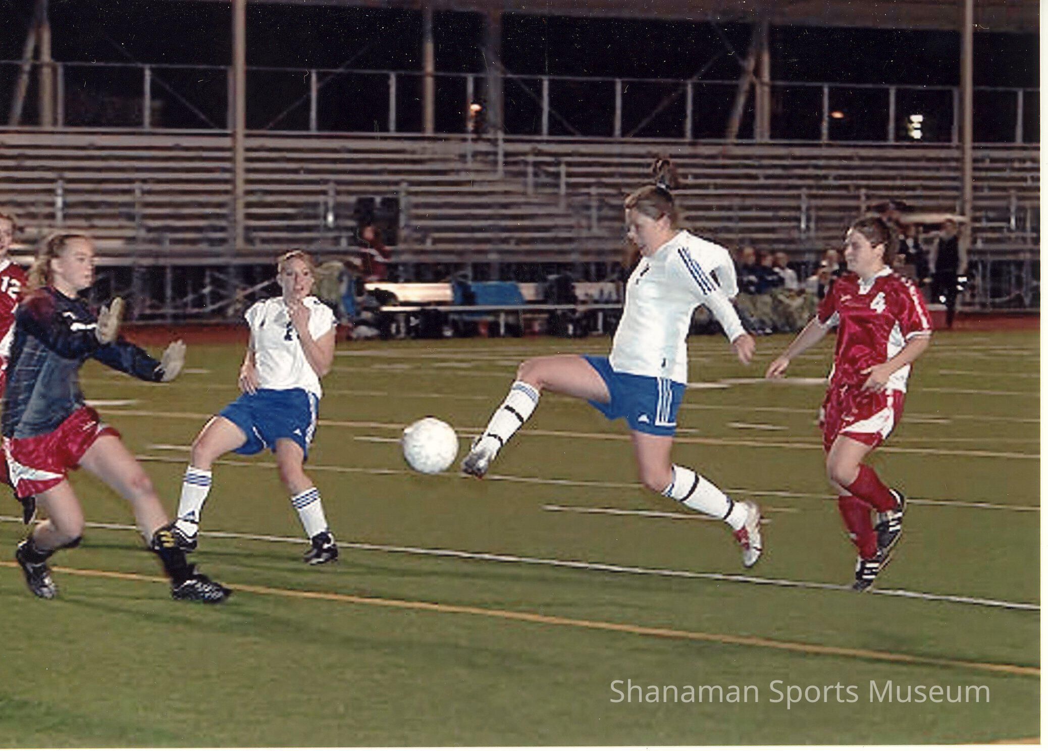Jenny Baker kicks a soccer ball in this action photo taken during her career at Eatonville High School, where she starred from 2002-05. The Cruisers captured the Class 2A state championship her senior season, beating East Valley of Yakima 4-3 in the title game. Baker scored three goals in that match, bringing her career total to 146 goals -- at the time No. 3 in Washington state history. She was a two-time all-state selection and the 2A State Player of the Year as a senior, ultimately going into the Eatonville Athletic Hall of Fame in 2016. Baker signed with Central Florida University, but transferred to the University of Oregon and played one season there as a reserve before finishing her career at Saint Martin's University in Lacey in 2009 and '10. Baker flourished as a senior, earning All-GNAC first-team honors after receiving an honorable mention in 2009. She ranks fourth in school history with most points in a single season (24), fourth in points per game in single season (1.33), tied for third in most goals in a single season (11), third goals per game in a single season (0.61) and tied for third in game winning goals in a single season (3). Additionally, Baker ranks fifth all-time in school history in points (33), second in points per game (0.97), fifth in goals scored (15), second in goals per game (0.44) and tied for second in game-winning goals (5).Lexicon