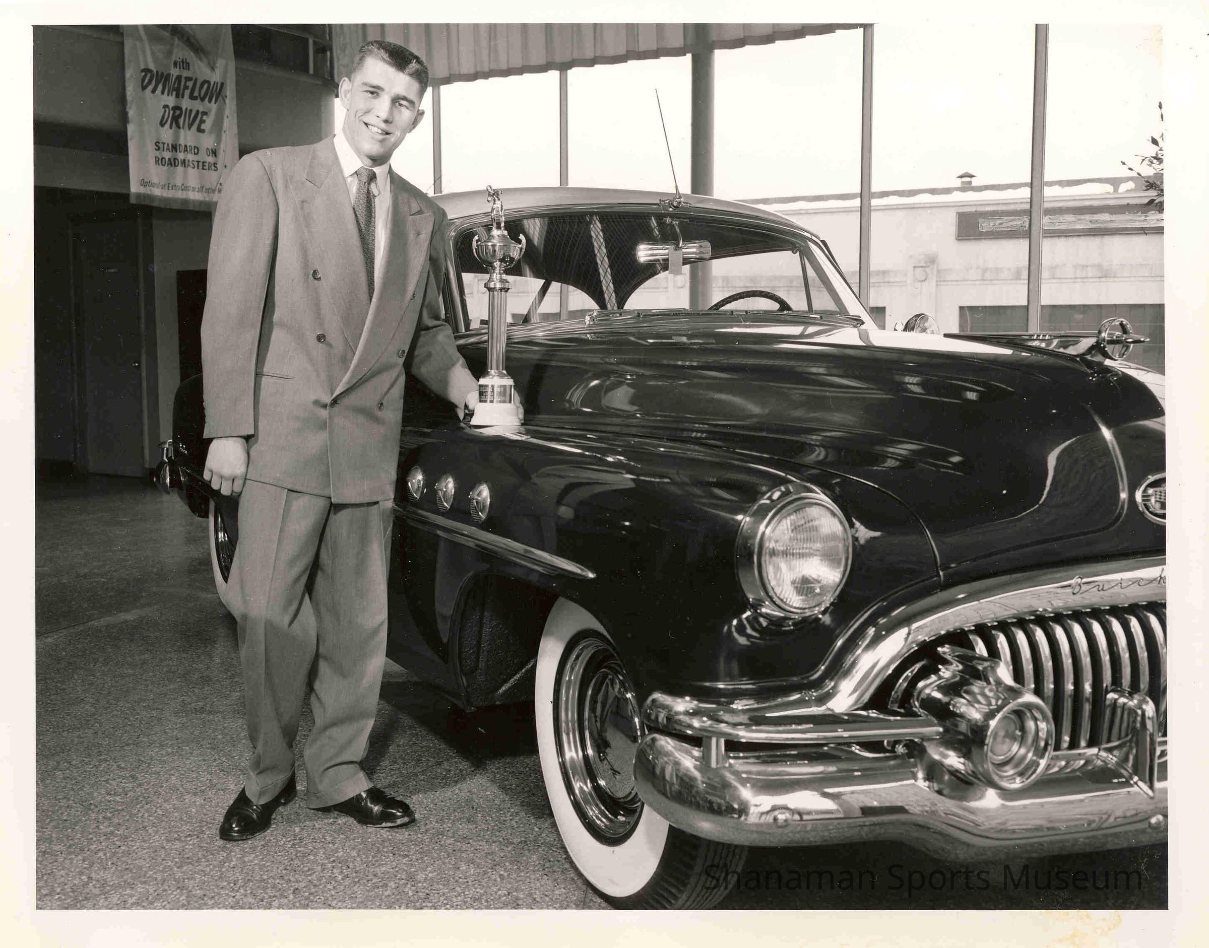 In this 1951 black-and-white photo, Pat McMurtry, one of the best boxers to come out of Tacoma, is standing next to a car in the showroom of his sponsor, Mueller-Hardkens, a Buick car dealer in Tacoma. McMurtry, a 1949 graduate from Lincoln High School, won the Northwest Golden Gloves tournament in Seattle in 1950 and earned the right to compete in the national AAU tournament held in Boston. McMurtry went on to fight professionally and was the fifth-ranked heavyweight in the world in the late 1950s. In the first Golden Gloves tournament held in Tacoma back in 1948, McMurtry won his weight class. McMurtry, who was nicknamed Irish, was a popular sports figure during the 1950s.Lexicon