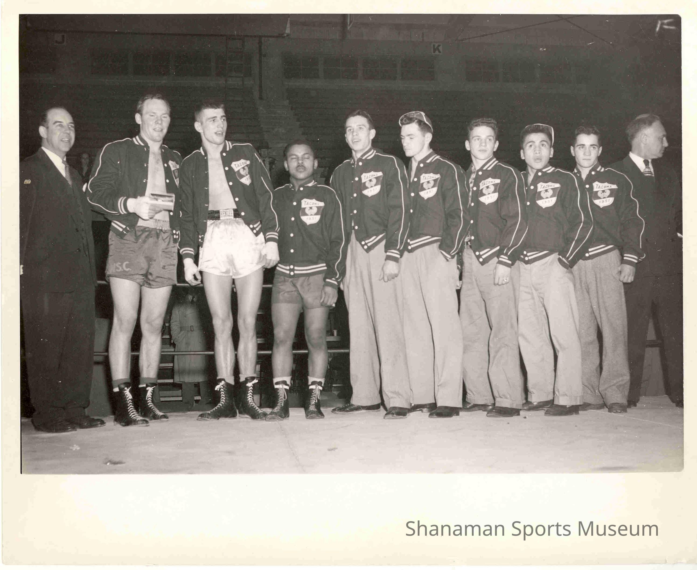 The 1951 Tacoma Gold Glove champions post for a group photo. Second on the left is Pete Rademacher and Pat McMurtry is third from the left. McMurtry boxed in the Tacoma's first Golden Gloves in 1949 and went on to become one of the top heavyweights in pro boxing during the 1950s. In 1958, McMurtry beat Canadian heavyweight champ George Chuvalo in the Madison Square Garden. Rademacher made boxing history when he fought for the world heavyweight title in his first professional fight and lost to Floyd Patterson. Rademacher qualified for the U.S. Olympic team and won a gold medal. He had 79 amateur fights, going 72-7.Lexicon