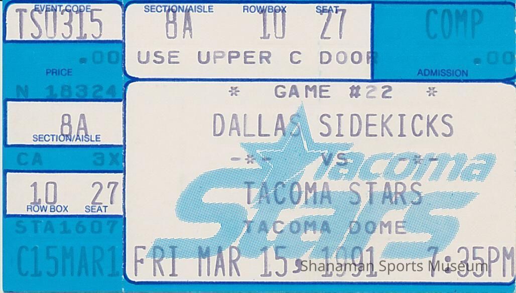 Ticket Stub: March 15, 1991 Dallas Sidekicks vs. Tacoma Stars at Tacoma Dome
