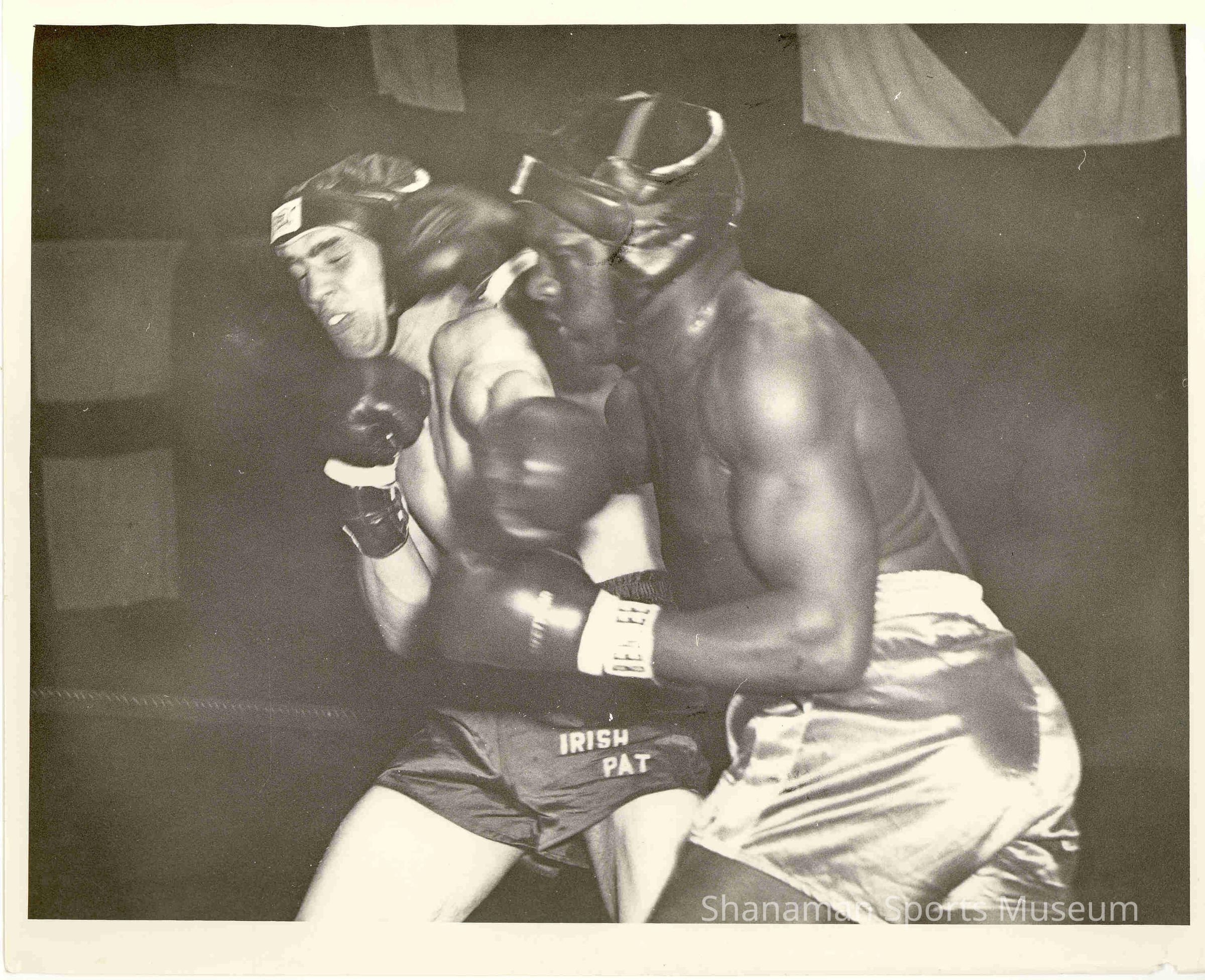 Pat “Irish” McMurtry throws some punches while in a bout fighting in the Marine Corps in 1952, continuing his successful amateur boxing career. He won the All-Marine title and only a broken hand prevented him from winning the the All-Service championship. McMurtry won 103 fights and lost only twice as an amateur before turning pro in 1954. During his pro career, McMurtry became a celebrity among Tacoma fans and was arguable the region's biggest sports star. In the summer of 1956, McMurtry, a graduate from Lincoln High School in Tacoma, fought two heavyweight bouts in Lincoln Bowl, drawing 10,729 fans and then 11,095 fans. The fights drew so much attention the Seattle Post-Intelligencer ran a special section on McMurtry on the morning of the second fight.Lexicon