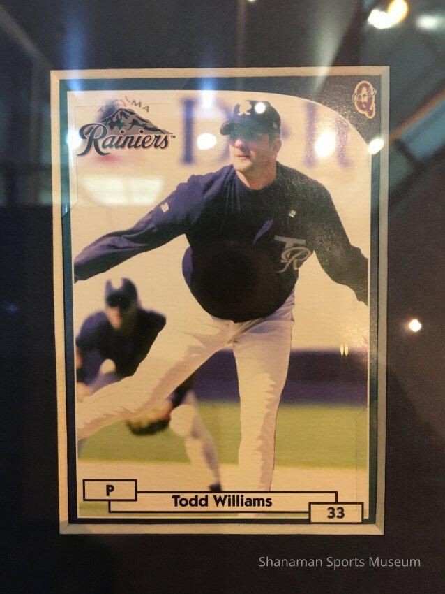 Todd Williams trading card of the Tacoma Rainiers. On display at museum during move January 2019