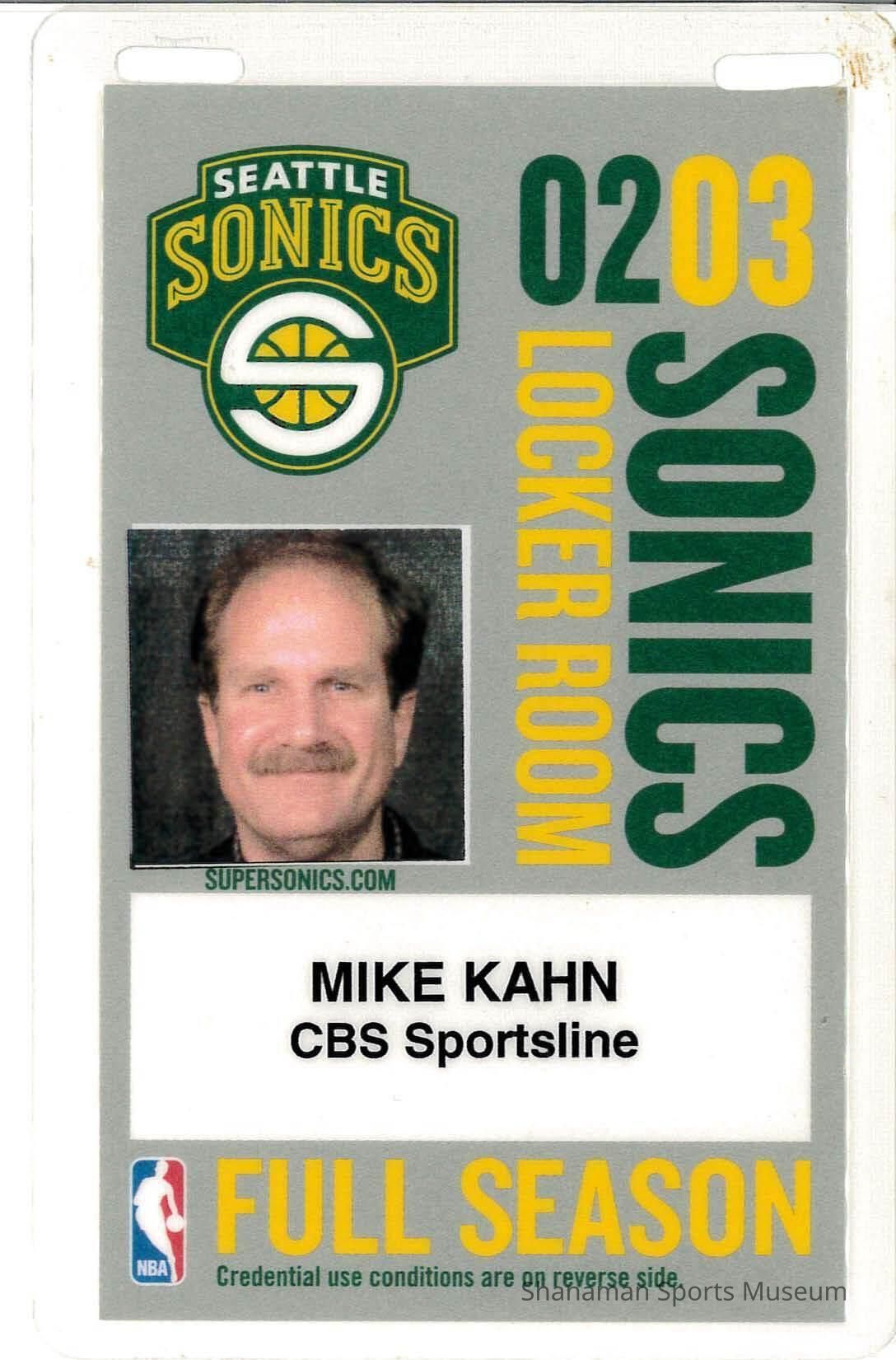 Press Pass Card, 2002-2003 Seattle Sonics Locker Room, Full season, for Mike Kahn, CBS Sportsline.Lexicon