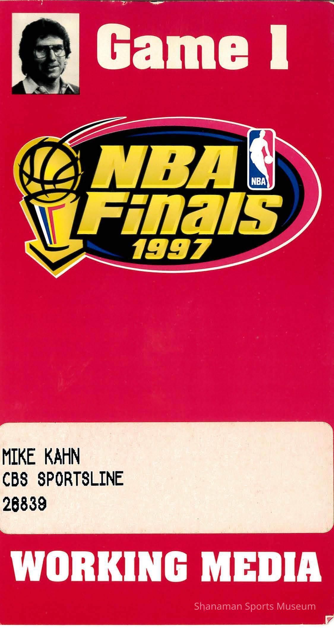Press Pass Card, 1997 NBA Finals, Game 1, Working Media, Mike Kahn for CBS Sports.Lexicon