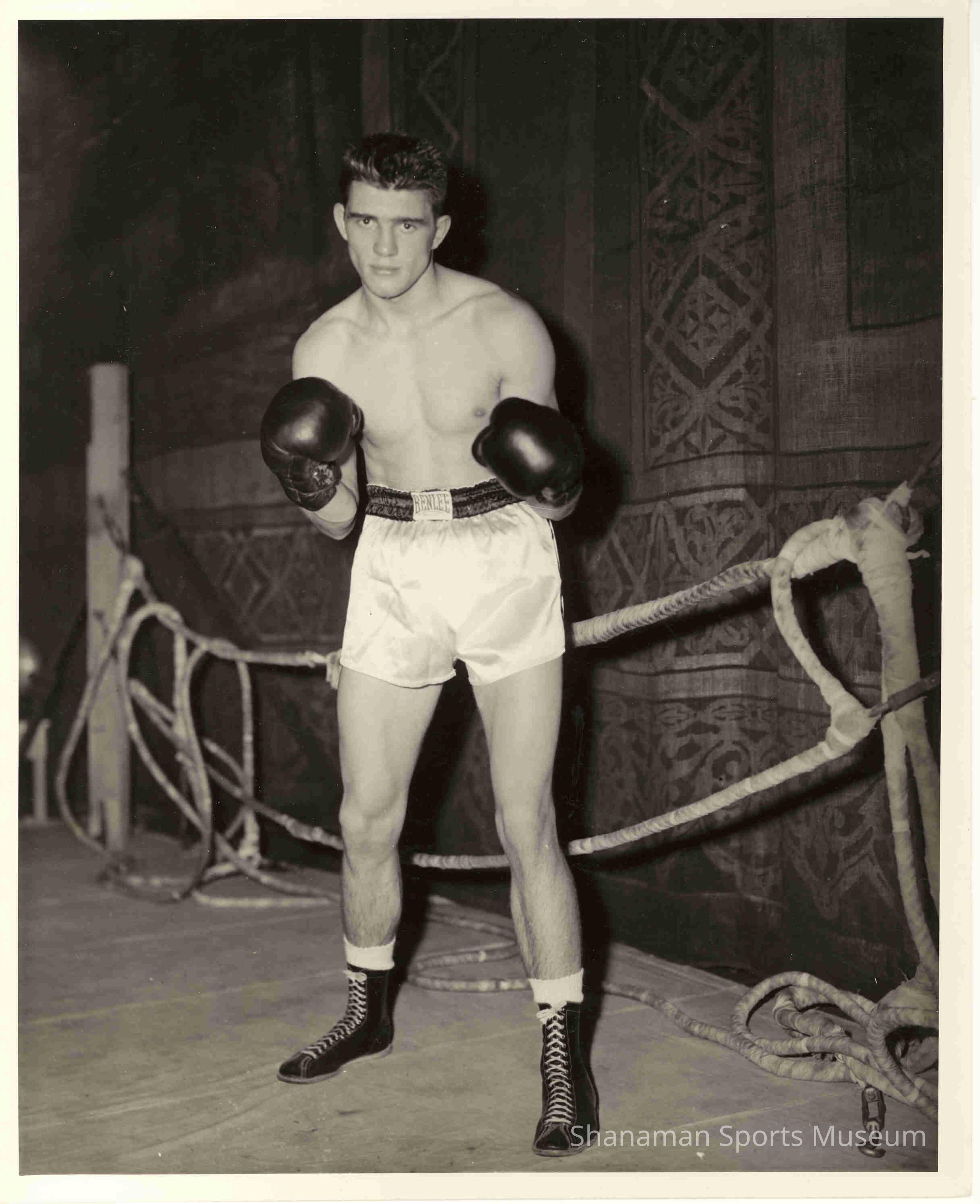 Pat McMurtry poses at the Roxy Theater in downtown Tacoma prior to an exhibition fight. McMurtry was a top-ranked heavyweight boxer in the 1950s and a local celebrity. He beat former heavyweight champ Ezzard Charles and was ranked as high as fifth in the world. He became a popular crowd favorite. McMurtry and his younger brother, Mike, grew up boxing. Their father, Clarence, who was an amateur boxer, gave them boxing gloves for Christmas in 1939 when they were young kids.Made/Created