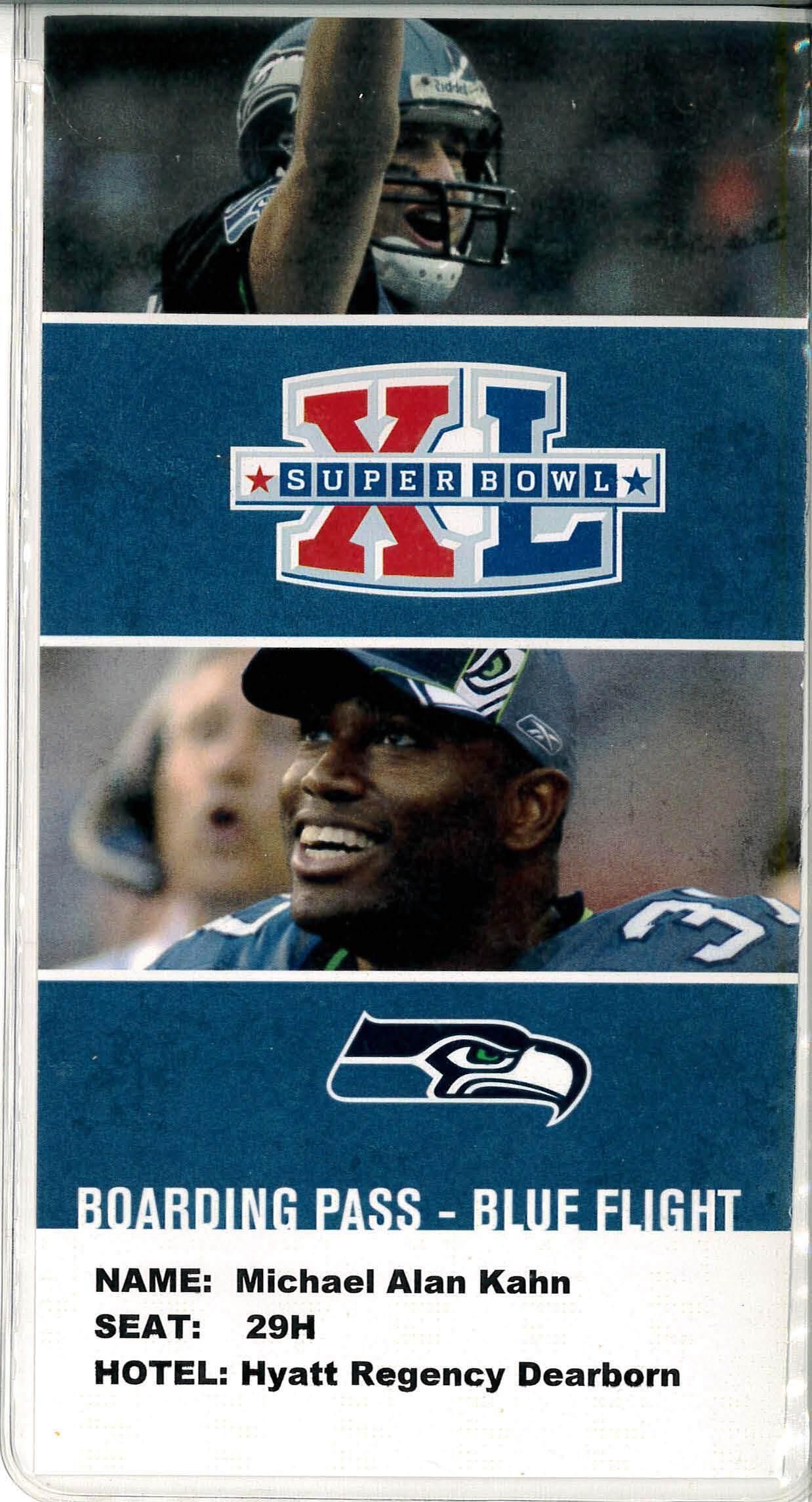 Press Pass Card, Super Bowl XL, Boarding Pass- Blue Flight for Michael Kahn.Lexicon