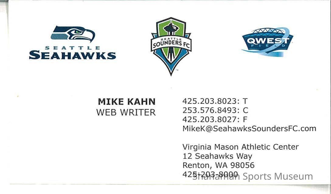 Business Card, for Mike Kahn, Web Writer, Seattle Seahawks and Seattle Sounders.Lexicon