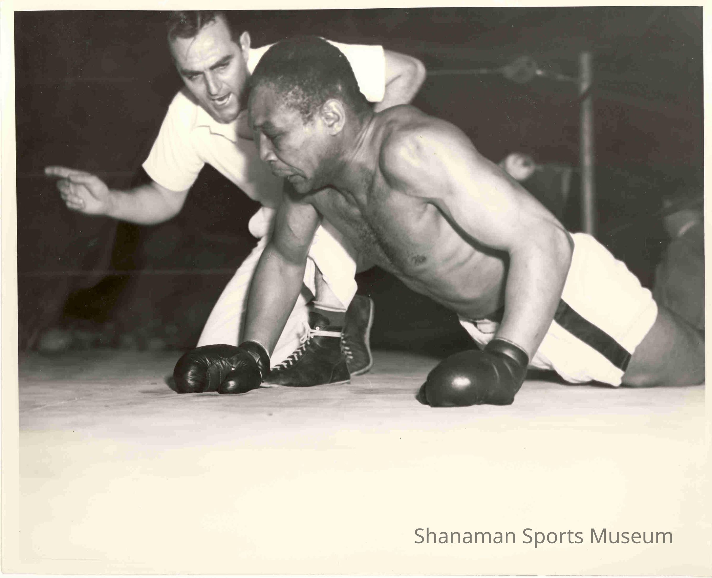 Bill Mathias attempts to get up after getting knocked down by Tacoma’s Pat McMurtry during a heavyweight fight in 1952. McMurtry went 33-4-1, including 25 knockouts, during his career that saw him ranked as high as fifth by Ring Magazine. He won Tacoma’s first Golden Gloves in 1949 and defeated Canadian heavyweight George Chuvalo in Madison Square Garden in New York City in 1958. McMurtry’s career ended in 1959 after he was knocked out for 17 minutes during a fight against Eddie Machen in the first round in Portland. McMurtry became a referee, working the ring for the next 29 years. McMurtry is a member of the Tacoma Pierce-County Sports Hall of Fame.