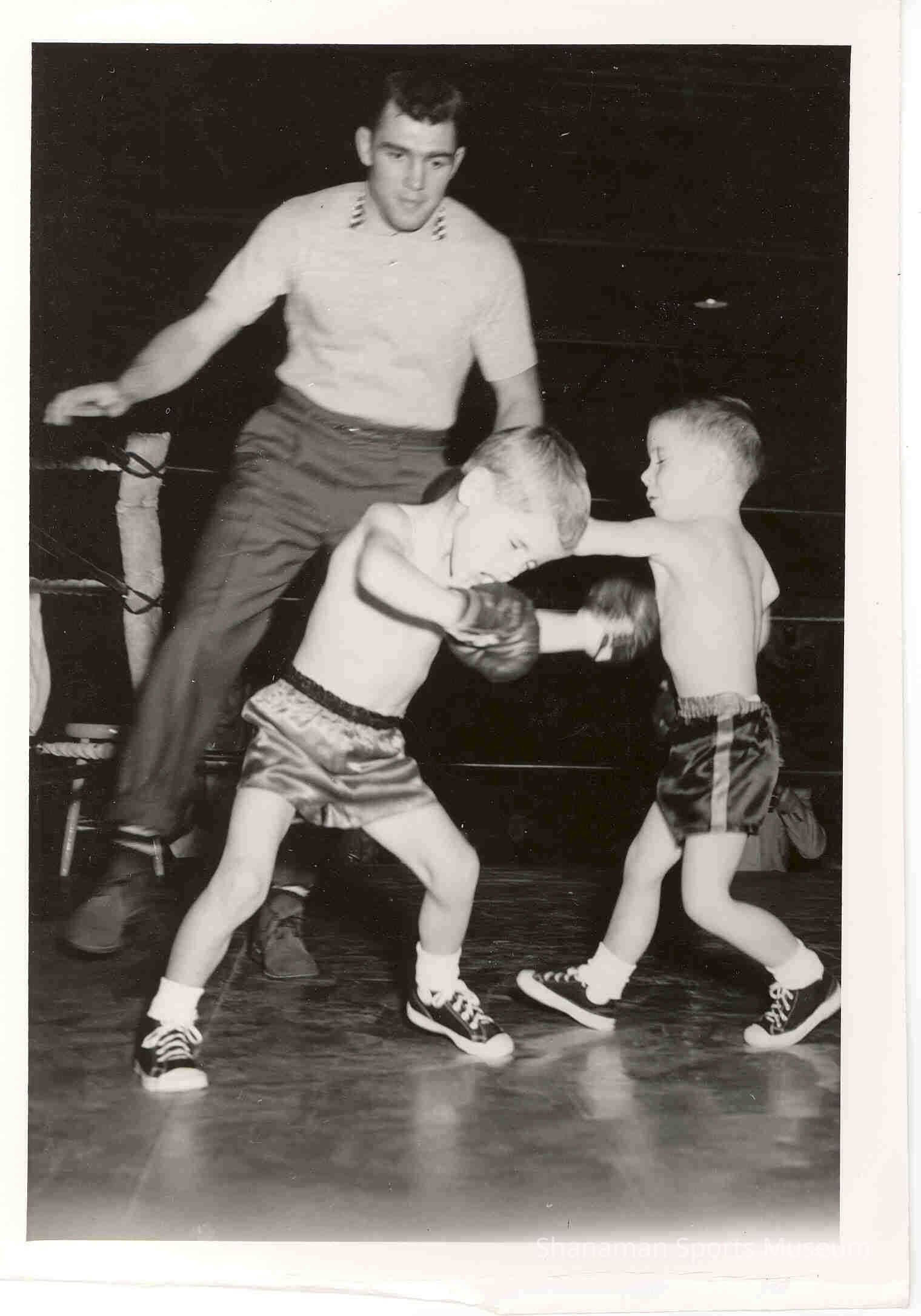 After a long and successful boxing career, Pat McMurtry turned to refereeing and is photographed doing just that in a fight between two young boys. After winning his first 16 pro fights and compiling an impressive 33-4-1 pro record, McMurtry was knocked out for about 16 minutes in his final pro fight in early 1960 . But that didn't end his commitment to boxing. He continued to referee and refereed for 29 years. In 1958 in a fight in Seattle against Germany's Willi Besmanoff, McMurtry, who was ranked fifth in the world at the time by Ring Magazine, looked sluggish and lost a split decision. The next day McMurtry went to the hospital and was diagnosed with pneumonia. It was amazing he finished the fight.Lexicon