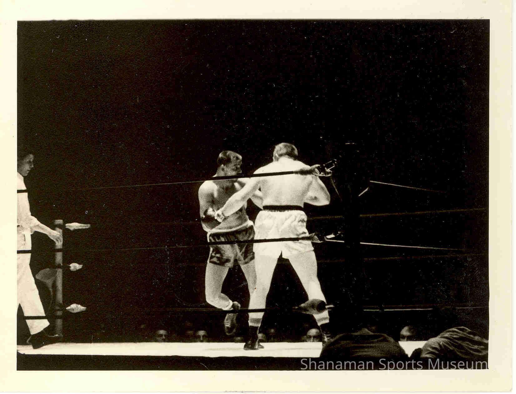 Tacoma's Pat McMurtry suffered his first setback of his pro career in this heavyweight fight against California's “Big” Bob Albright in Seattle back in 1955. The heavyweight contenders fought to an eight-round draw in what was a bloody fight. McMurtry broke his hand in the third round and the injury would sideline him for six months. When McMurtry turned pro in 1954 after getting out of the Marines, he began his successful pro career and finished 33-4-1 with 25 knockouts. As an amateur he won 103 of his 105 fights and one of his two losses came at the national AAU tournament in Boston in 1951. He broke a bone in his hand that tournament and he decided to continue to fight and lost a close decision in the semifinals. In 1959, McMurtry won his rematch with Albright, winning by a fifth-round technical knockout after breaking Albright's nose.Lexicon