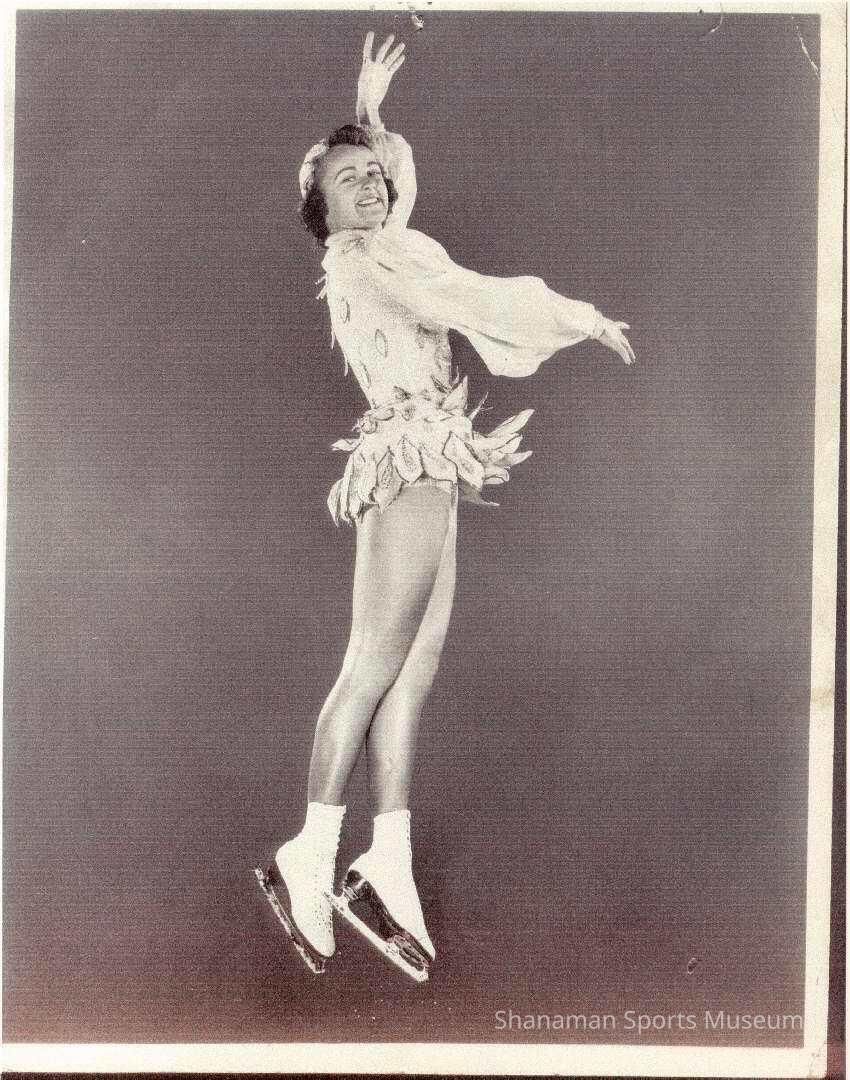 Marlene Jackson Thurston poses as “Pam” in the 1954 Ice Follies at the Lakewood Ice Arena. The Ice Follies was a touring show that featured elaborate production numbers and costumes and would later evolve into the Ice Capades to include several Olympians.