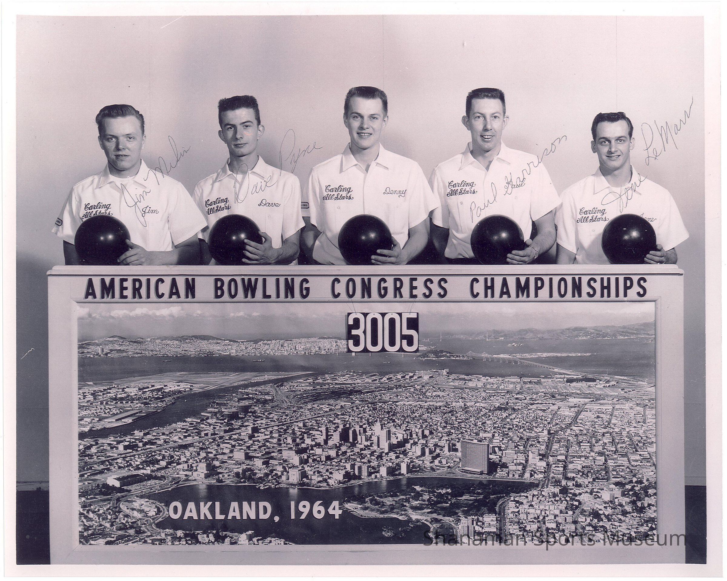 Denny Krick poses for a picture with his Carling All-Stars teammates at the 1964 American Bowling Congress Championships. Krick, a devoted and longtime bowler, was inducted into the G.T.B.A. Hall of Fame in 1982.Lexicon