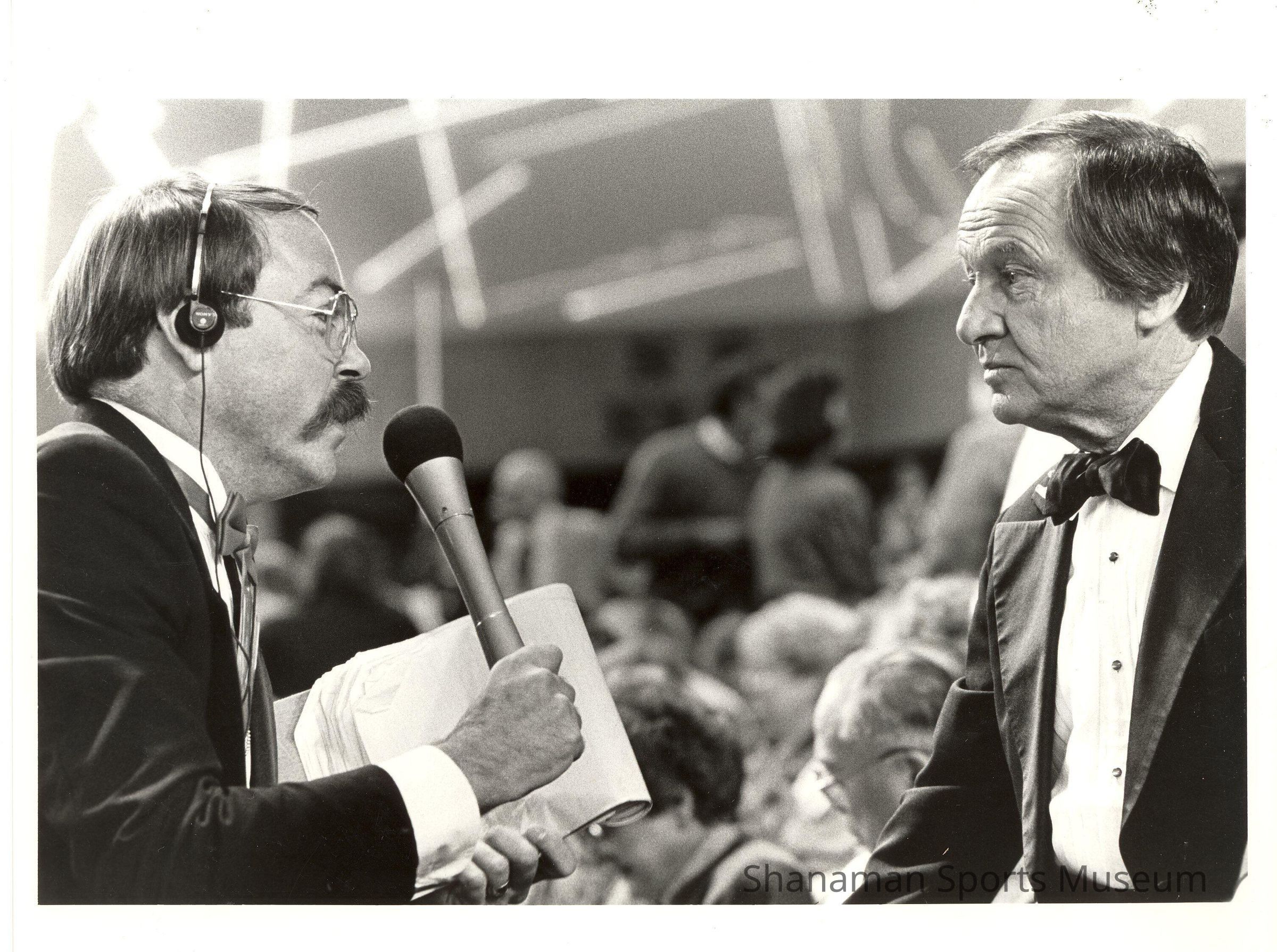 Tacoma broadcaster and journalist Art Popham, left, shares the mic with Jim McKay, host of ABC’s Wide World of Sports, in the Tacoma Dome. Popham, former public relations director for the Oakland Athletics, lived in Tacoma for 25 years. He was the radio voice of the Tacoma Tigers and wrote a business column for The News Tribune. He died in 2002 at the age of 52.Lexicon