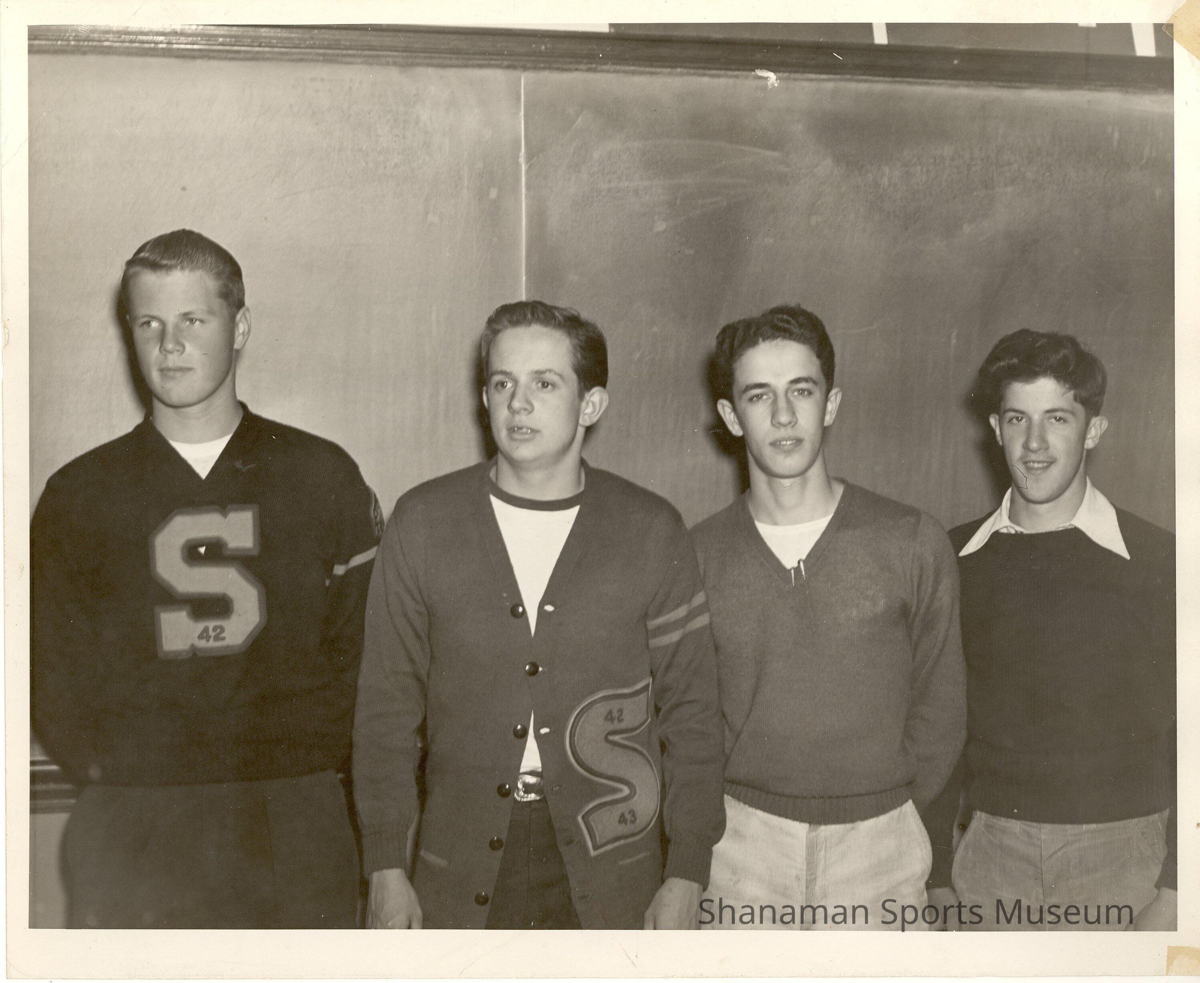 Bill McGovern (left) stands with three teammates from the 1943 Stadium High School's football team. Standing with McGovern, who is wearing a Stadium letterman's sweater, are Paul Boyle, Gary LaPore and Dick Salatino. Just a few weeks after playing his last football game for Stadium, McGovern suited up for the Washington Huskies for the Rose Bowl. Two weeks after playing against Lincoln High School on Dec. 2, 1943, McGovern enrolled into the University of Washington' service training program. On Jan. 1, 1944, a 17-year-old McGovern suited up for the Huskies Rose Bowl game against Southern Cal. The Huskies lost 29-0. He became the youngest player to play in the Rose Bowl and the first to play in both high school and college in the same season.Lexicon