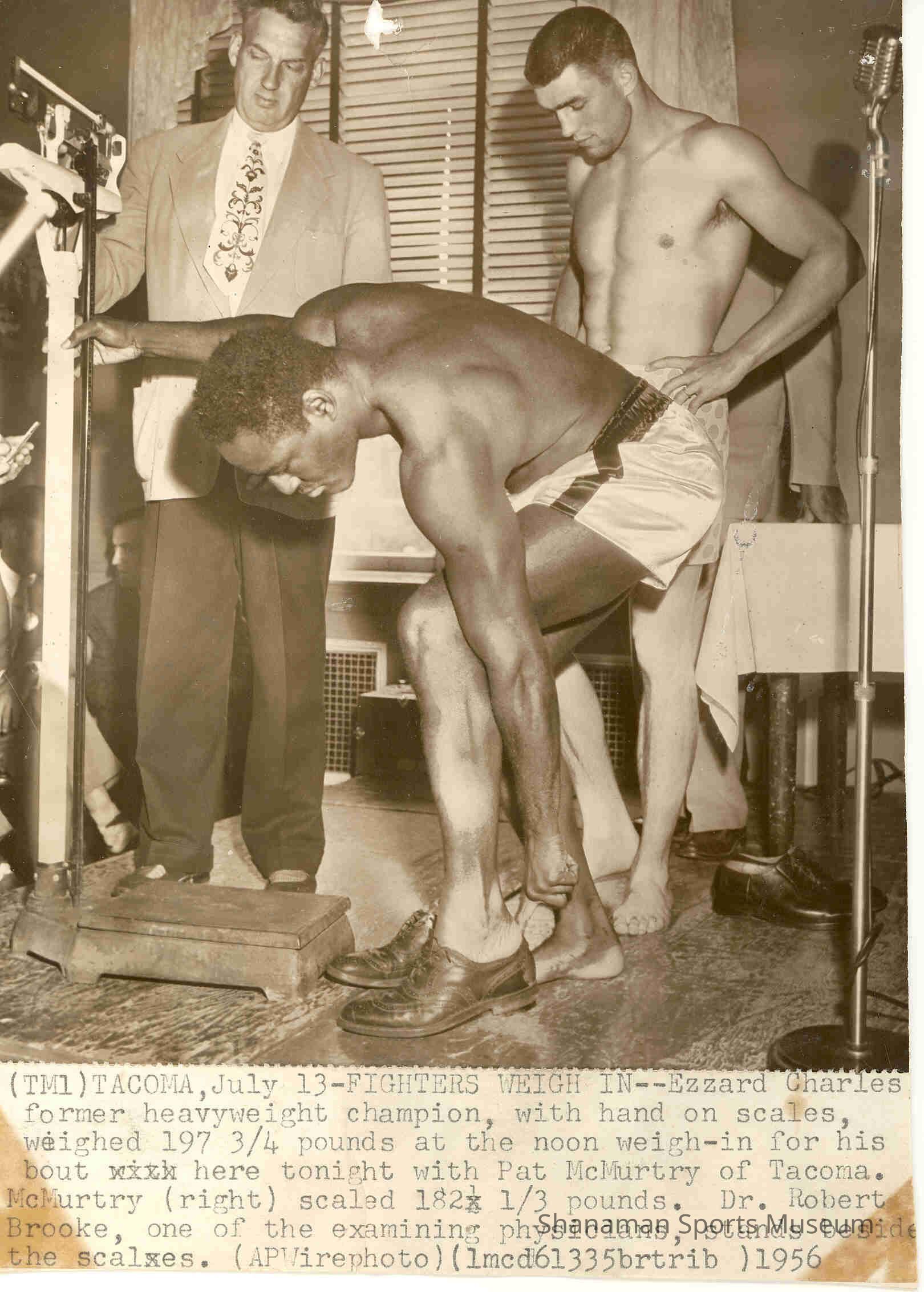 Tacoma's Pat McMurtry waits for Ezzard Charles to weigh in before their fight back in July 1956. It was a special fight for McMurtry, who grew up in Tacoma and graduated from Lincoln High School. The fight was fought in Tacoma's Lincoln Bowl. It was an outdoor fight and a crowd of 10,729 cheering fans came out to see their hometown hero fight the former heavyweight champion of the world. Charles defeated several Hall of Fame fighters in his career, including Rocky Marciano and Joe Lewis. But on this day, McMurtry was the better fighter and he beat Charles in a 10-round decisionMade/Created