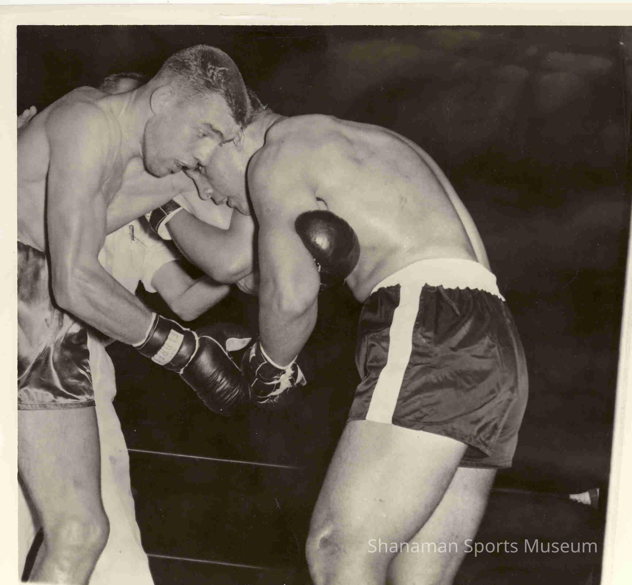 In this black-and-white photo taken in 1956, Pat McMurtry is fighting Willie Pastrano, who was managed by the famous Angelo Dundee. McMurtry, who was one of the most famous sports figures in the Northwest during the 1950s, fought Pastrano in Tacoma's Lincoln Bowl. Fighting in front of 11,095 jubilant fans, McMurtry lost a tough 10-round decision to Pastrano. But McMurtry won his next five fights and climbed to No. 5 in the world rankings of heavyweight fighters.Lexicon