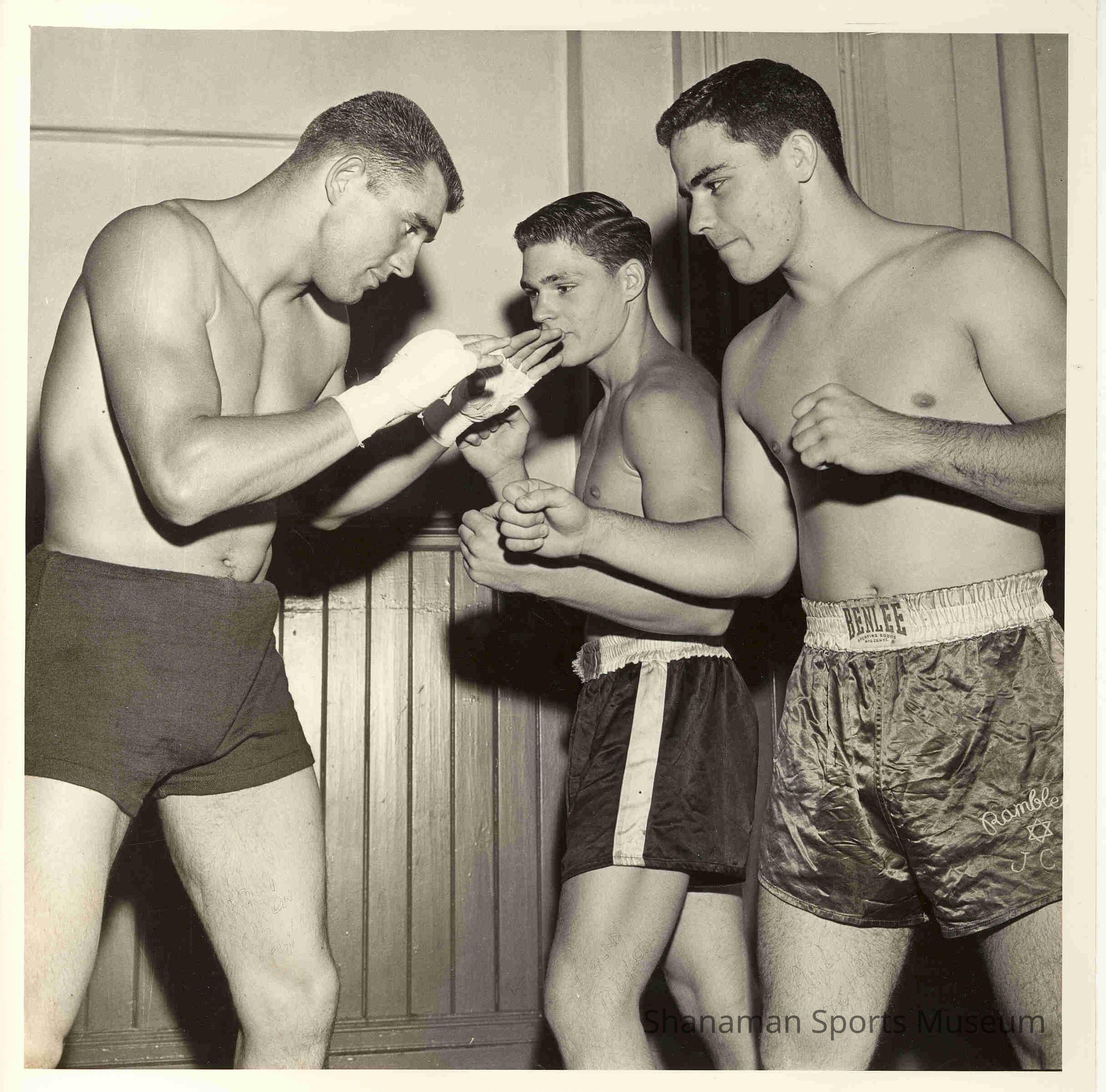 Here is a black-and-white photo of Pat McMurtry, Denny Moyer and Phil Moyer, taken in 1957 prior to the main event - the Bobo Olson, McMurtry fight. Olson was the world middleweight champ between 1953 and 1955. McMurtry, a graduate from Lincoln High School in Tacoma, defeated Olson by a knockout and became the fifth ranked heavyweight in the world by the late 1950s. When McMurtry turned pro in 1954, his father, Clarence McMurtry, became his manager. When Clarence married his wife, he told her they were going to have two sons and both were going to box. His wish came true.Lexicon