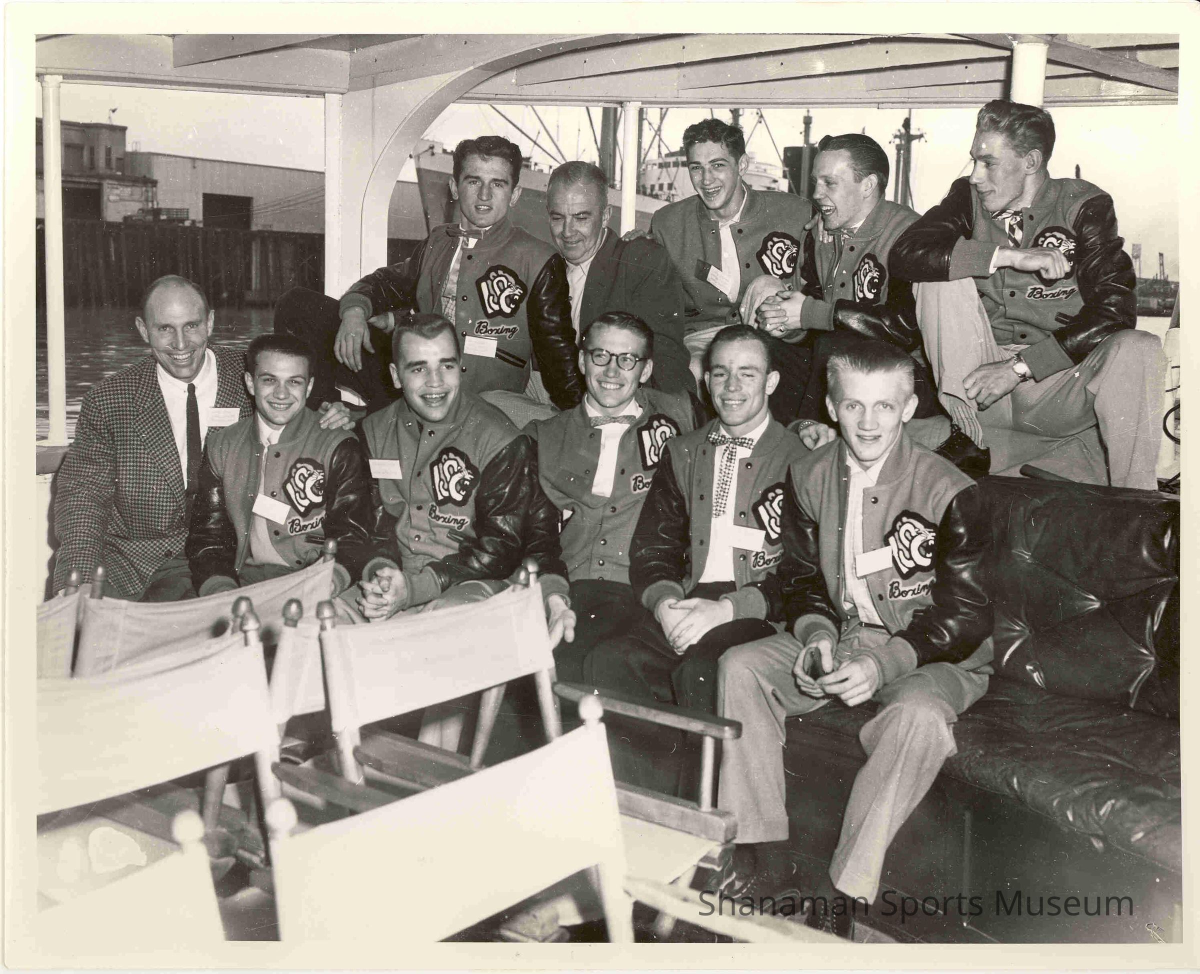 Mike McMurtry, sitting third from the right in the front row, sits with his teammates at Idaho State College. McMurtry won a NCAA heavyweight title boxing for Idaho State. In his quest for the NCAA title, McMurtry defeated a previously undefeated Bob Hinds to win the 1954 heavyweight championship. McMurtry fought as an amateur for 12 years and piled up an impressive 207-7 record. He said he cherished his years of boxing even though he developed epilepsy in 1959 as a result of a brain injury suffered in his only professional fight. He has been honored by the Red Cross for his work with the swimming program for the handicapped in Tacoma.Lexicon