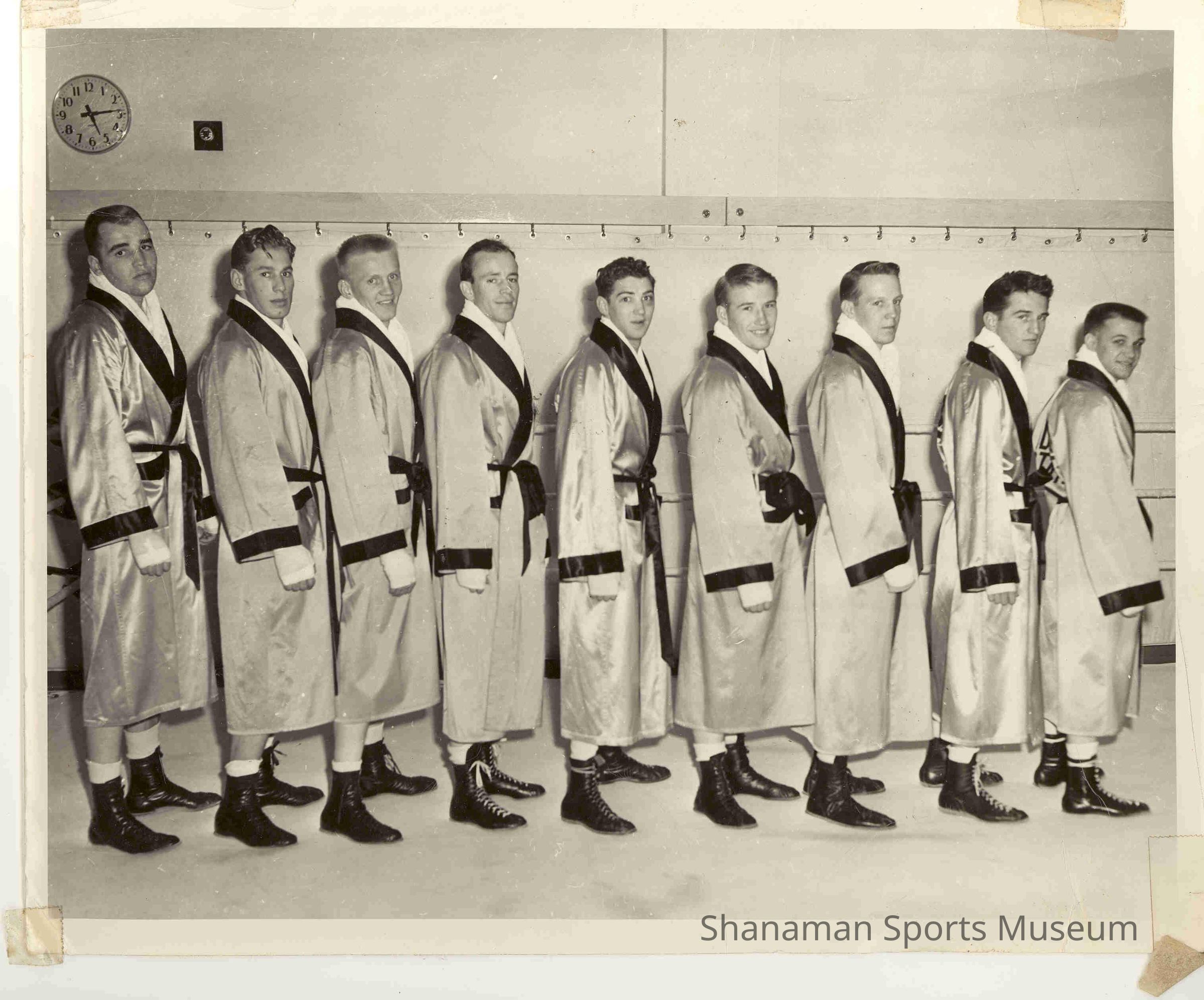 Tacoma's Mike McMurtry (third from left, bottom row) sits for a picture of the Idaho State College boxing team. McMurtry boxed at both Gonzaga and Idaho State, winning a NCAA title in 1958 while boxing at Idaho State. He transferred to Idaho State after the 1952 season when Gonzaga dropped its boxing program. He had to sit out 1953 because of NCAA's transfer rules. In 1952, McMurtry lost in the NCAA finals to finish second. McMurtry also fought in the NCAA tournaments in 1955 and 1956. In 1981, McMurtry was inducted into the Idaho State University Sports Hall of Fame.Lexicon
