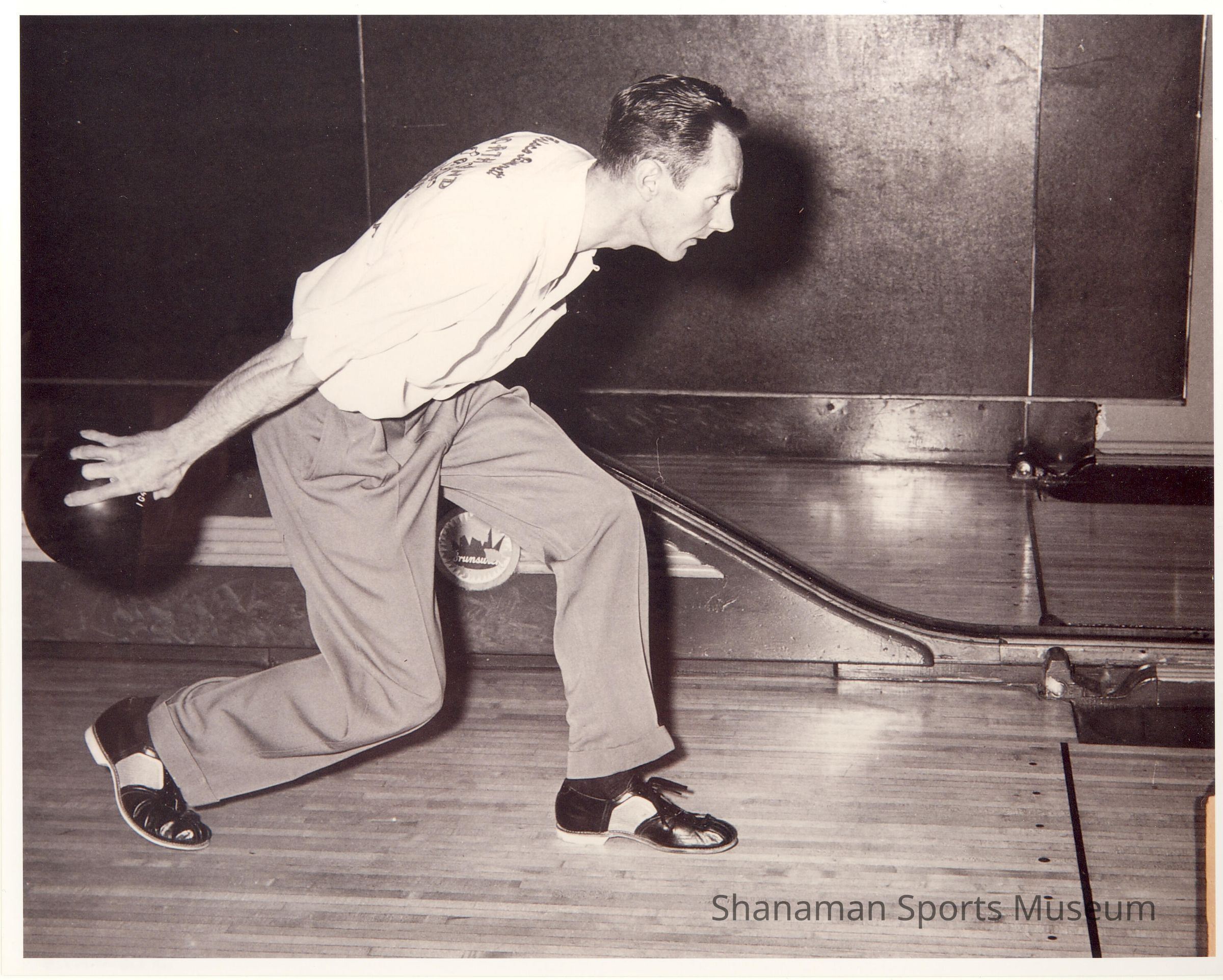 A right-handed Frisco Burnett lets loose with a shot, displaying his perfect bowling form. Burnett is considered to be one of the best bowlers from Tacoma and was inducted into the Tacoma Sports Hall of Fame in 1982. Burnett, who died in a car wreck in 1962, was a four-time selection to the All-West Coast Team and was inducted into the American Bowling Congress' Hall of Fame in 1969.Lexicon