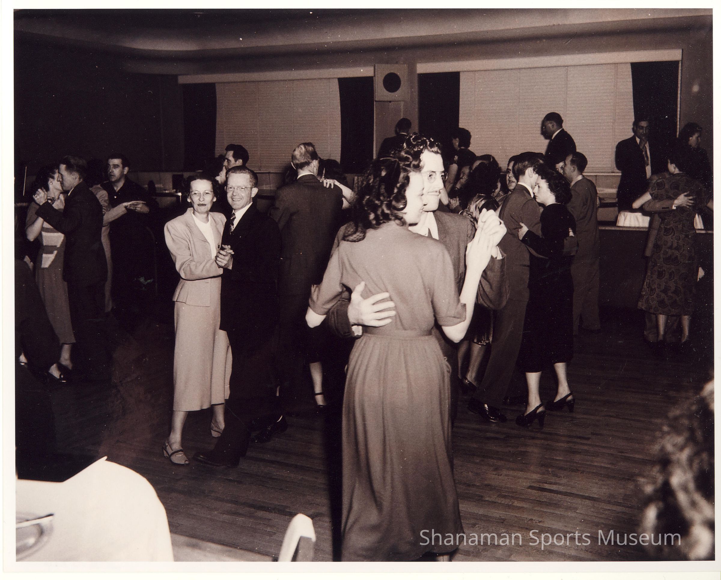Couples dance at a fun get-together, showing that bowlers could do more than just bowl. Bernice Burnett's husband, Frisco Burnett, was an avid bowler and was inducted into three hall of fames for his accomplishments in bowling. In 1951, Burnett was among the 160 bowlers in the nation who qualified for what was called the World Series of Bowling. He finished in tenth place. By 1959, he qualified eight times for the National All-Star tournament.