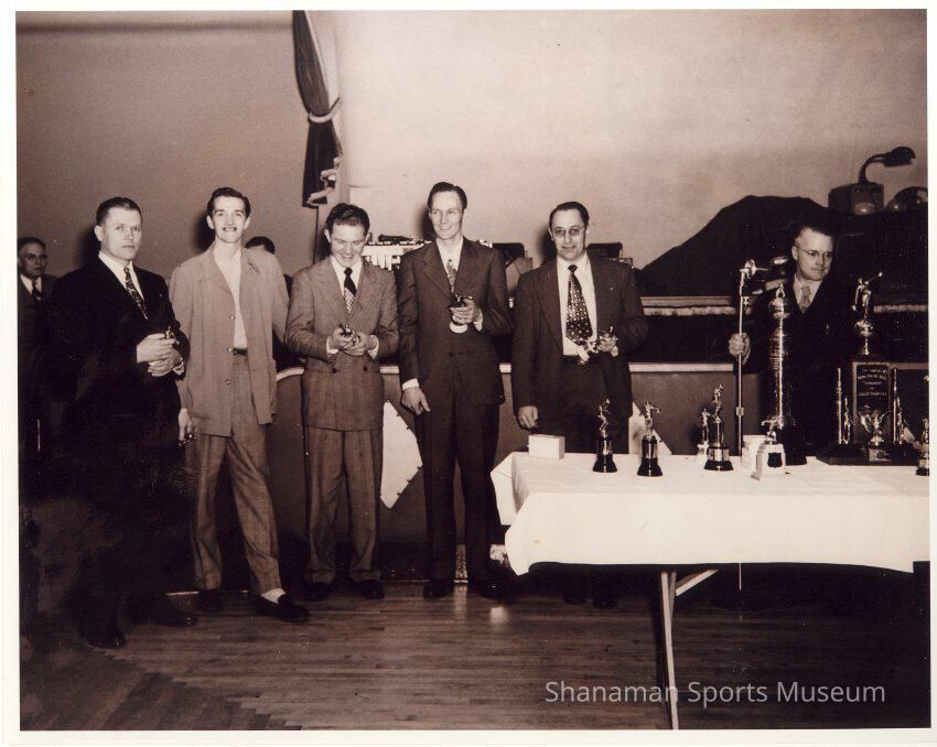 Frisco Burnett, fourth from the left, is considered to be among the best bowlers to come out of Tacoma. Burnett began bowling in 1942 and was an eight-time Greater Tacoma Bowling Association all-star. He won the first Western Washington Match-Play Championship in 1955 and he was a frequent qualifier for national tournaments. In recognition of his long and successful bowling career, Burnett was inducted into three hall of fames.Lexicon