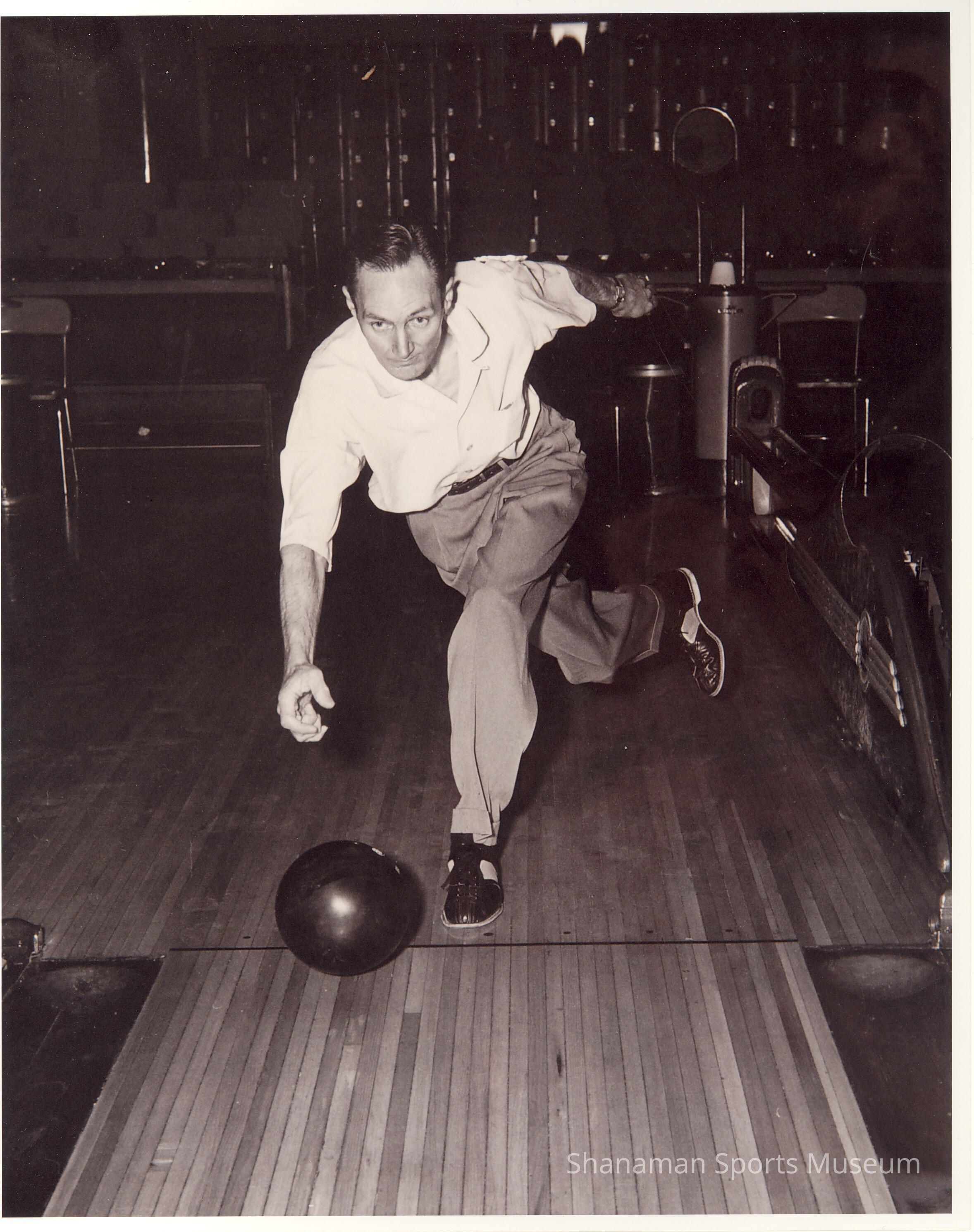 A 5-foot-11, 155-pound Frisco Burnett lets loose with another form-perfect shot in this black-and-white photo. An avid and successful Tacoma bowler, Burnett rolled six perfect 300 games in a successful bowling career that began in 1942 after watching his wife, Bernice, bowl in a Tacoma league in 1941. He was inducted into the American Bowling Congress' Hall of Fame in 1969.Lexicon