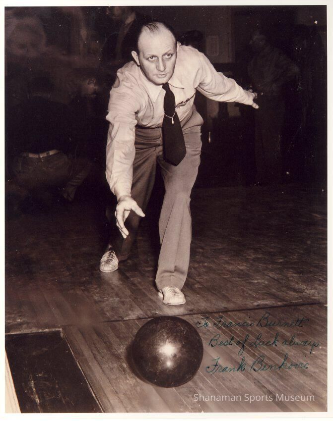 Frank Benkovic does what he loved doing – bowl. On the photo, Benkovic wrote, “To Francis Burnett. Best of Luck always. Frank Benkovic” In 1932, Benkovic was the American Bowling Congress doubles champ.Lexicon