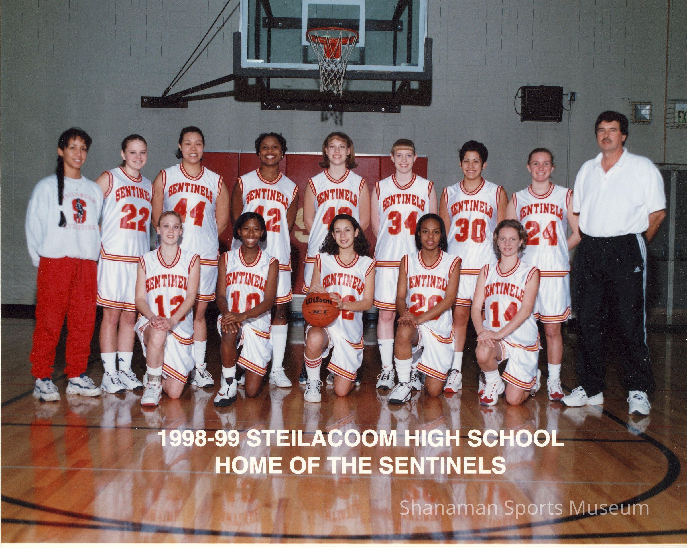 Team portrait of the 1998-99 Steilacoom High School girls basketball team, with no individual IDs available. The Sentinels did not qualify for the state tournament that season.Lexicon