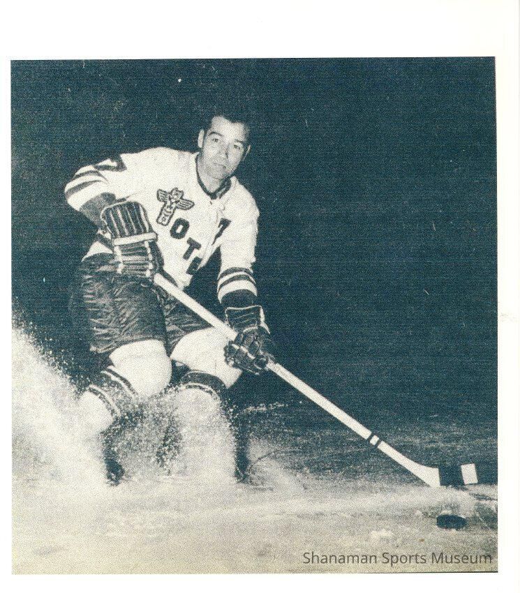 Hockey legend Guyle Fielder, shown in a photo from his playing days for the Seattle Totems, played his junior career mostly for the Totems in the 1950s-60s. He went on to an illustrious albeit short-lived NHL career finishing fourth in scoring for his career behind only Wayne Gretzky, Jaromir Jagr and Gordie Howe. Fielder played 22 seasons in the Western Hockey League and became its biggest star at the time. Fielder won rookie of the year in 1952, was a six-time league MVP, league scoring leader nine times, three-time honoree as the game’s most gentlemanly player and had four season of more than 100 points.
