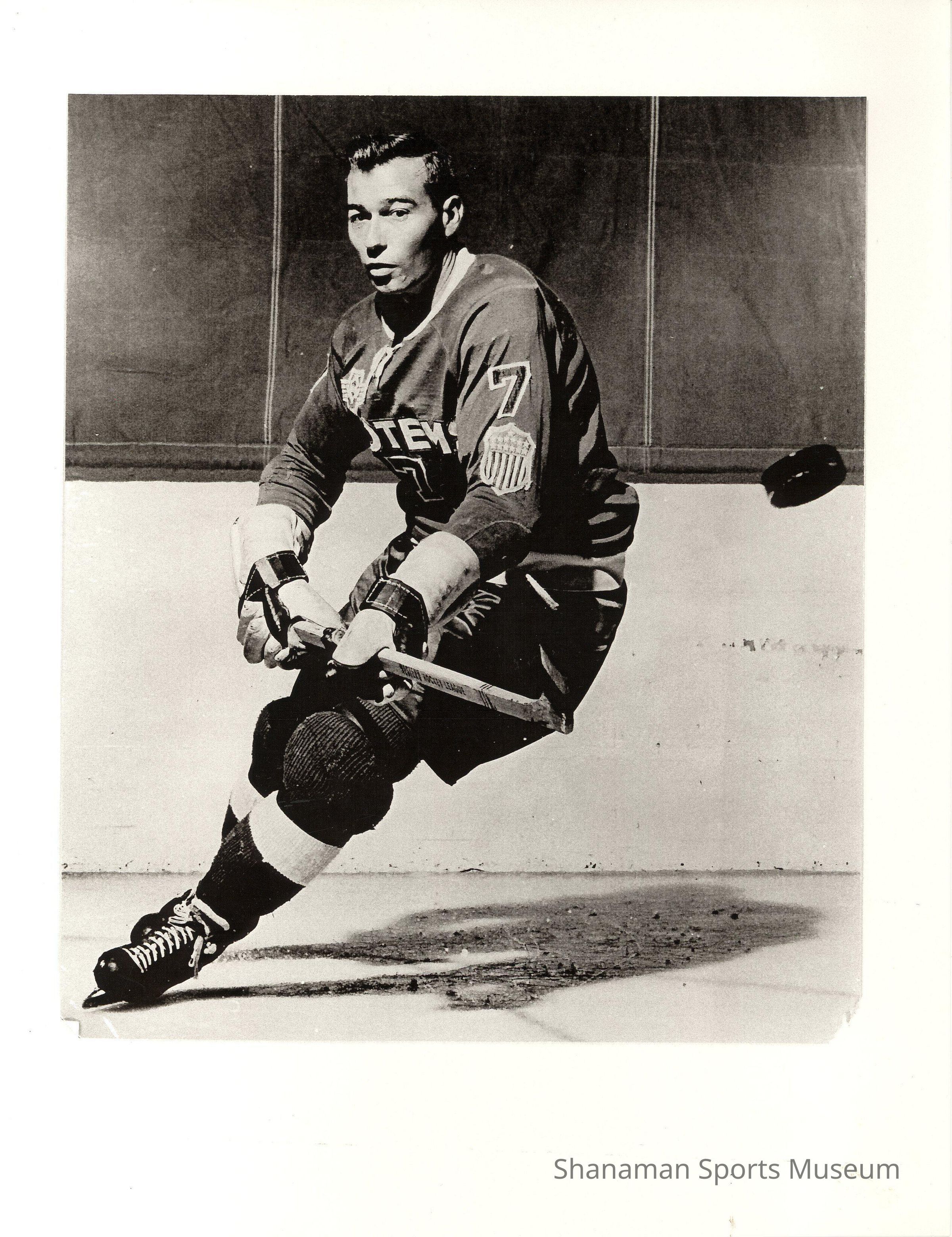 Hockey legend Guyle Fielder, shown in a photo from his playing days for the Seattle Totems, played his junior career mostly for the Totems in the 1950s-60s. He went on to an illustrious, although short-lived, NHL career finishing fourth in scoring for his career behind only Wayne Gretzky, Jaromir Jagr and Gordie Howe. Fielder played 22 seasons in the Western Hockey League and became its biggest star at the time. Fielder won rookie of the year in 1952, was a six-time league MVP, league scoring leader nine times, three-time honoree as the gam’s most gentlemanly player and had four season of more than 100 points.