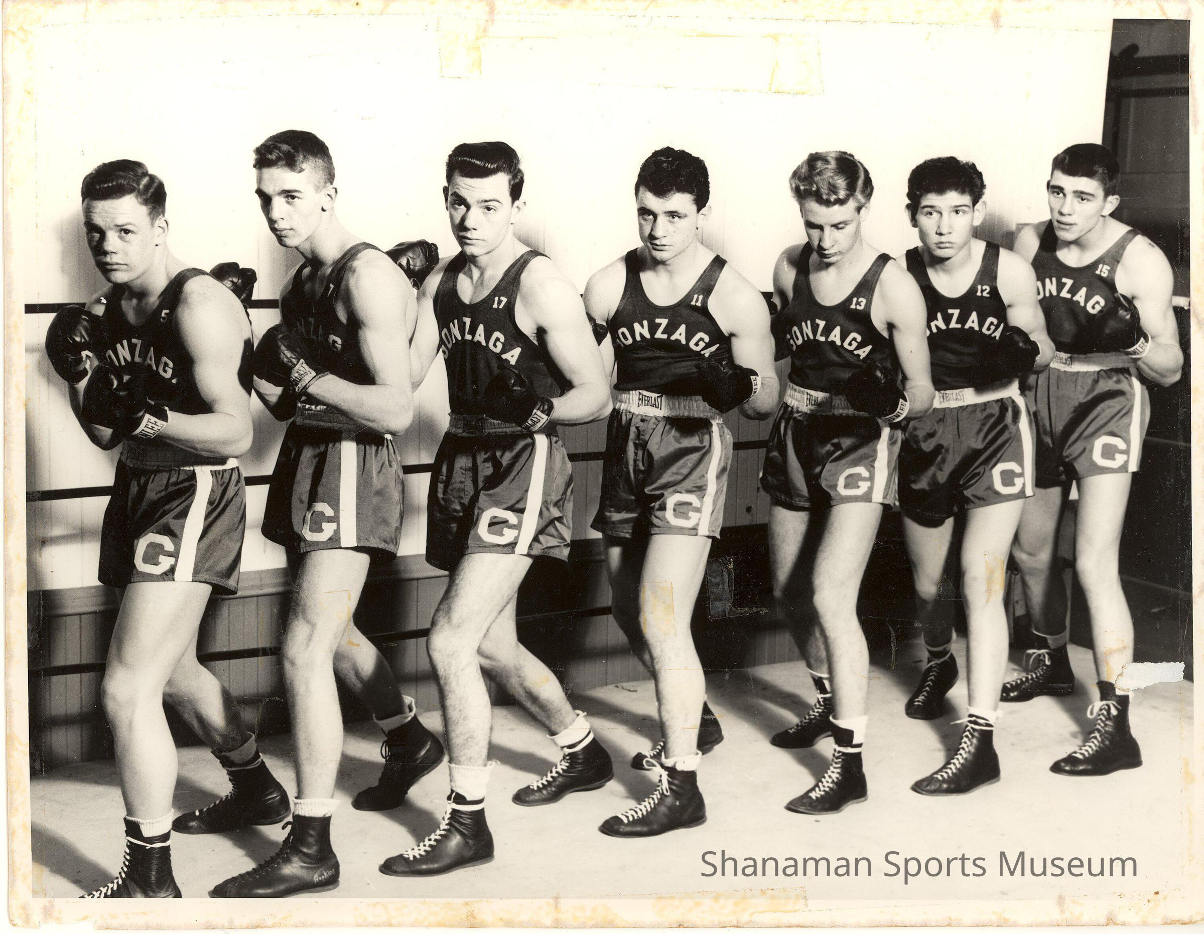 Tacoma's Ruggles Larson stands with his teammates on the University of Gonzaga's boxing team in 1950. Larson began his 11-year amateur boxing career in 1947 and fought in numerous Gold Glove tournaments, losing in the finals by split decisions three times. In 119 amateur bouts, Larson, a 1952 graduate from Lincoln High School, finished with 93 wins, 23 losses and three draws. In 1956, he won the Vancouver Island title and lost in the semifinals of the Seattle Golden Gloves that same year.
