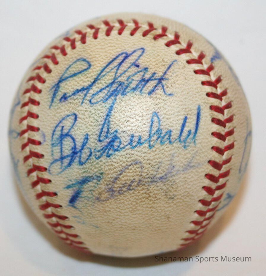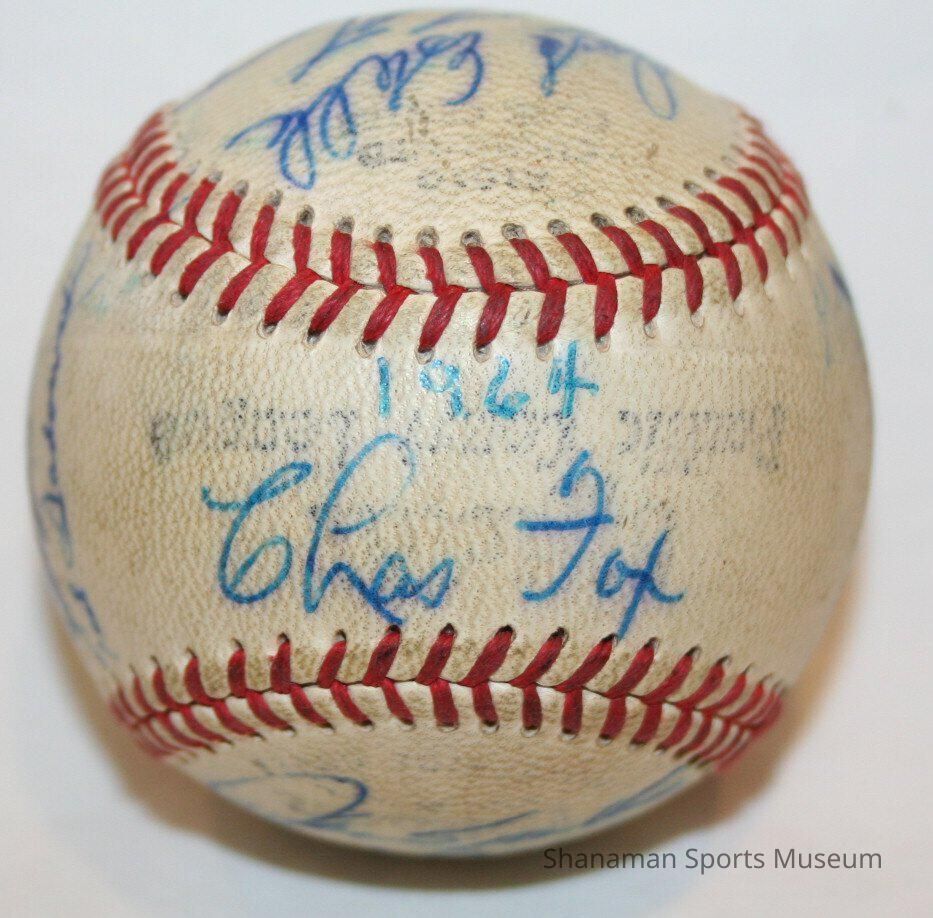 Players on the 1964 Tacoma Giants baseball team autographed this baseball in dark blue ink. Charlie Fox managed this Tacoma Giants team. Gerald Thomas, who grew up in Tacoma, was a starting pitcher for the Giants that year. The 6-foot-3, 220-pound pitcher had a 16-12 record with a 3.58 ERA. The 1961 Tacoma Giants team finished with an impressive 97-57 record and were led by Gaylor Perry, a future Major League start. From 1960 to 1965, they were the Tacoma Giants. But in 1965, the San Francisco Giants owner Horace Stoneham moved his Triple-A affiliate from Tacoma to Phoenix. Then from 1966 to 1971, Tacoma's minor team changed affiliations to the Chicago Cubs and they were the Tacoma Cubs.Lexicon
