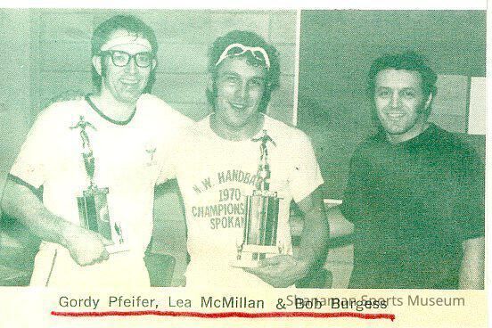 Photograph- b/w of handball players Gordy Pfeifer, Lea McMillan and Bob Burgess.Relationships