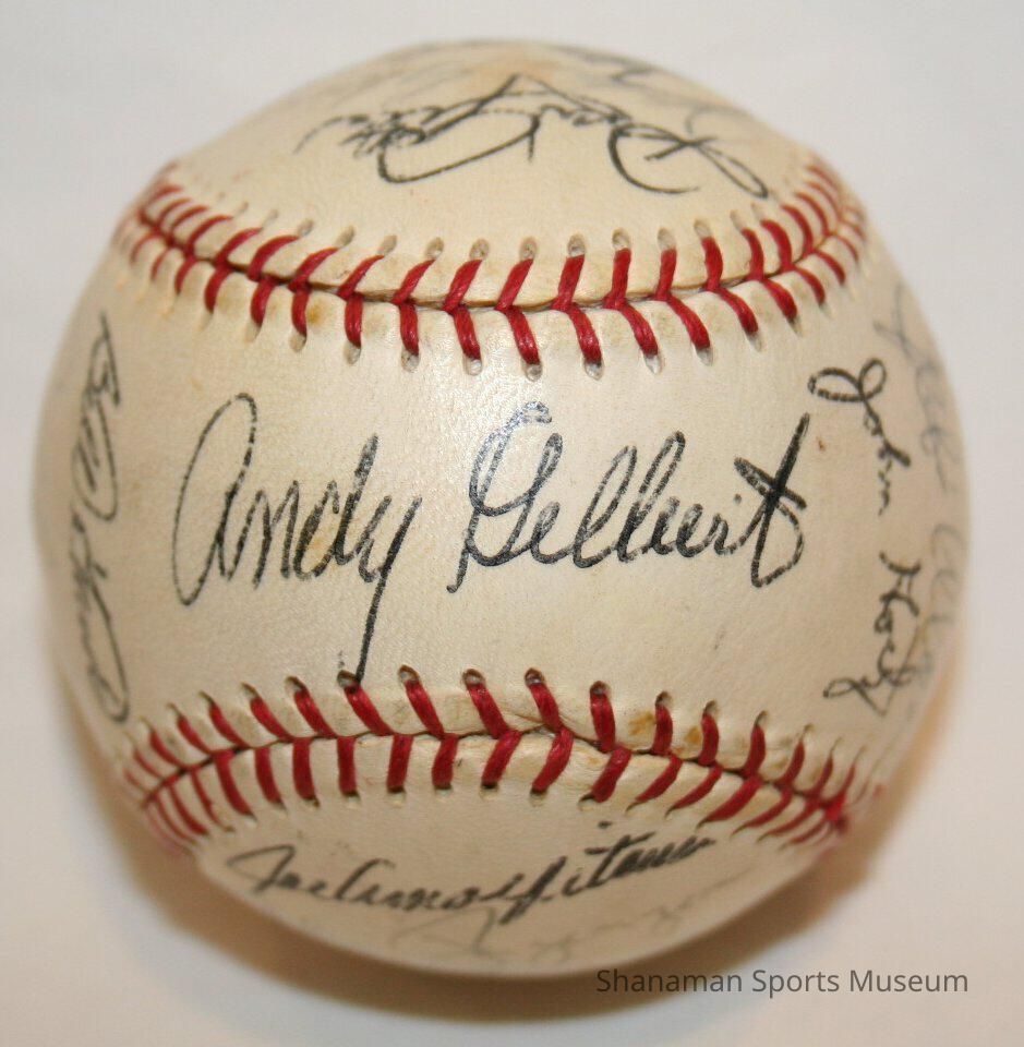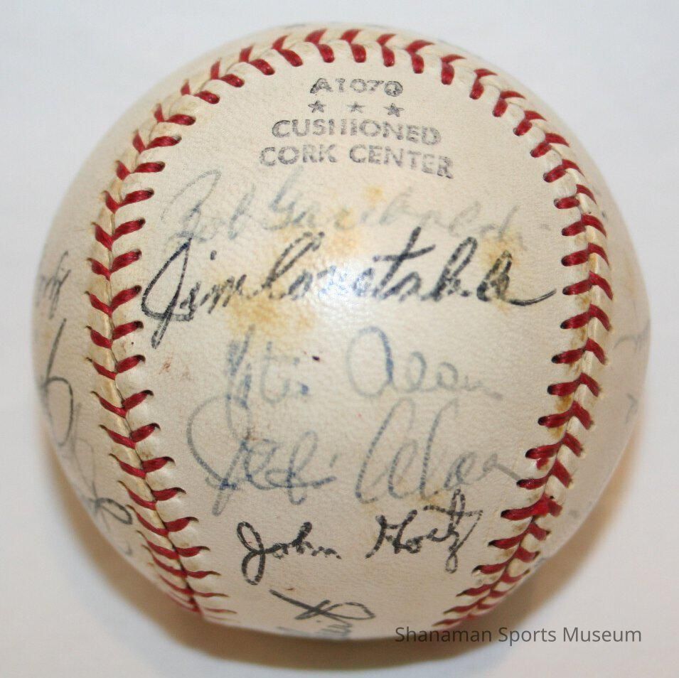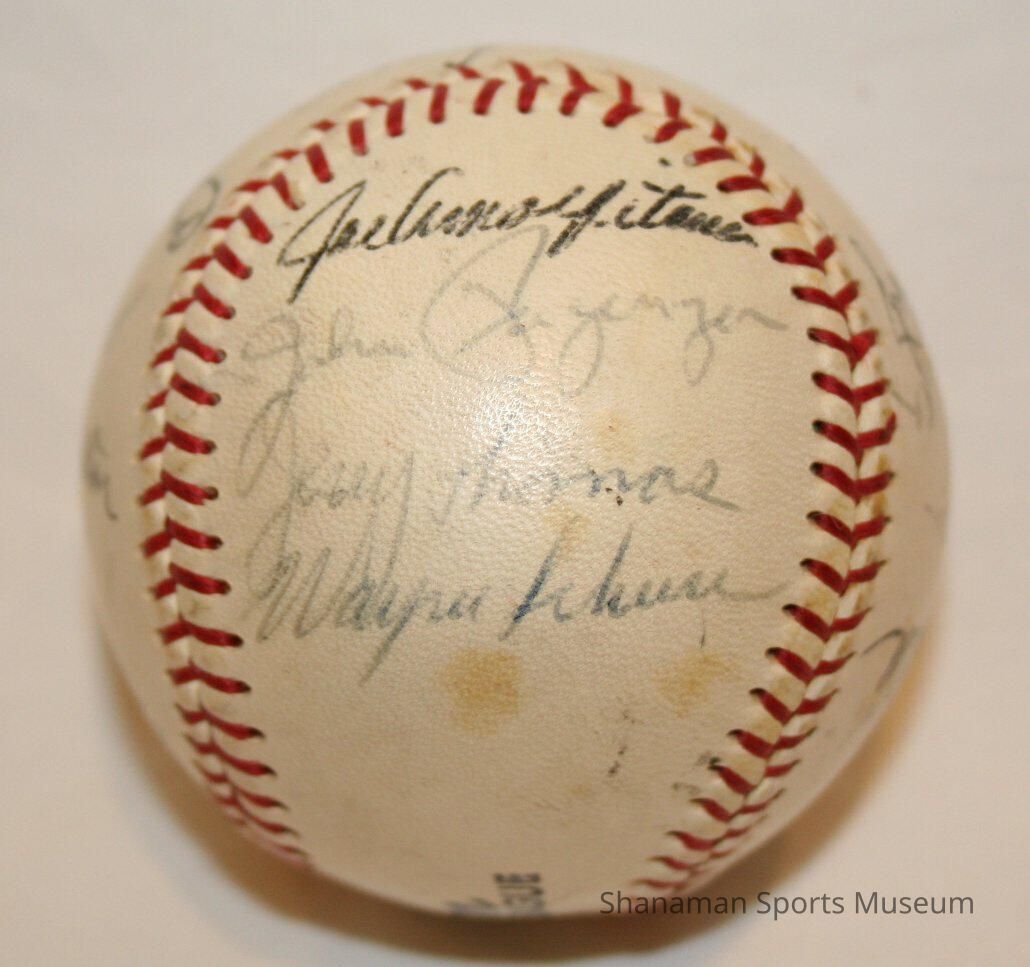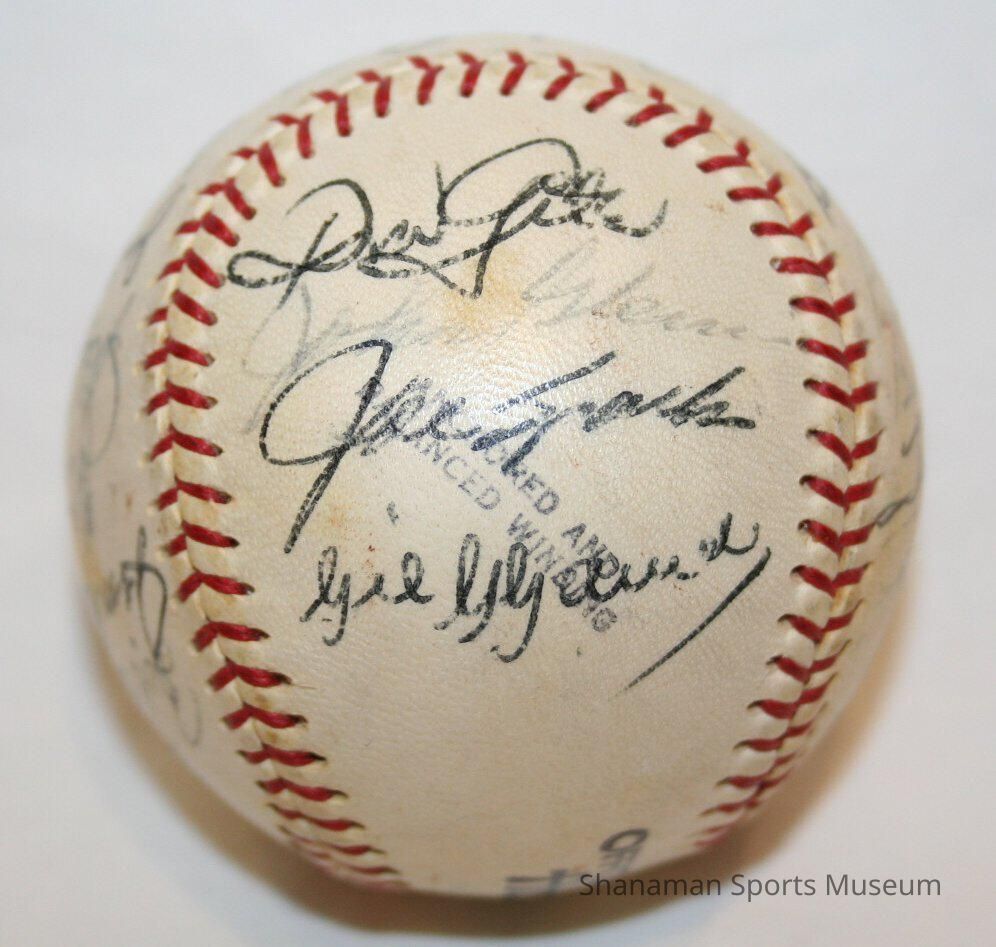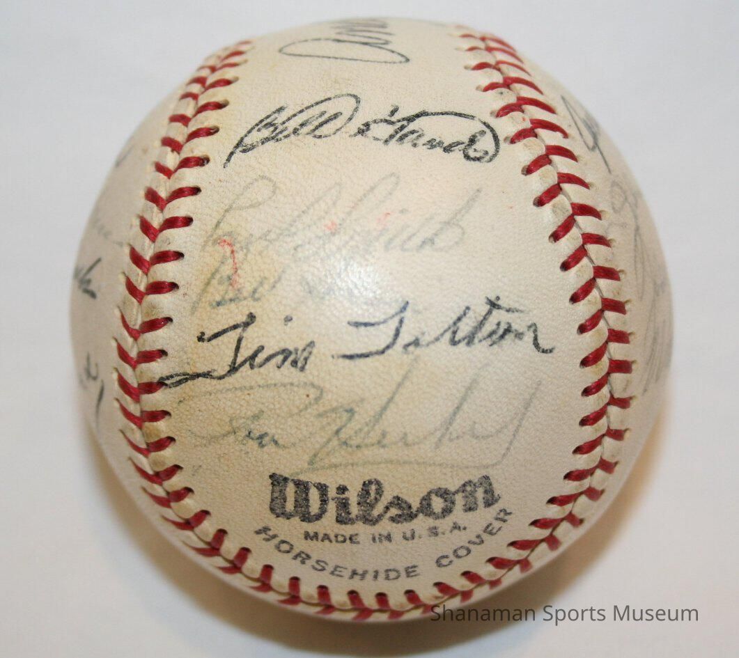 The Tacoma Giants team autographed this baseball in 1963. Tacoma's current Pacific Coast League team was founded in 1960, the same year Cheney Stadium was built. Tacoma got a Triple-A team in 1960 when the Phoenix Giants, a minor league affiliate of the San Francisco Giants, moved to Tacoma and became the Tacoma Giants. On April 16, 1960, the Tacoma Giants won their first game in Cheney Stadium, beating Portland 11-0. Juan Marichal, a future major league hall of famer, picked up the win that game as he pitched the team's first shutout. Next year, the 1961 Tacoma Giants finished 97-57 on a team led by Gaylord Perry, Ron Herbel, Eddie Fisher and Dick Phillips.