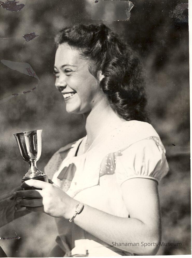 Marilyn (Kropf) Appel, a Tacoma native and Lincoln High product, started playing tennis on the boy’s varsity tennis team at Lincoln in 1947. Appel, shown accepting a trophy in 1947, challenged for a position on the team and won, becoming the first girl in Lincoln’s history to play on the boys team. She went on to win every match for two years and became the first female letter winner. From 1946-48 Appel won every club and city championship and toured throughout the Northwest, winning many tournaments. She also claimed the Pacific Northwest Junior Women’s Singles Championship in 1948. Appel went on to attend the University of Washington and became an All-University Women’s Tennis champion. Appel continued to play tennis throughout her lifetime and taught her four daughters at Mercer Island High School where they were on championship teams. Appel served as a tennis instructor at Jack Kramer Country Club, Blue Ridge Tennis Club and was a member of the Seattle Tennis Club. Appel was inducted into the Washington State Sports Hall of Fame in 2009. Photo donated by Jim Appel.