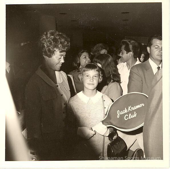 Photograph- b/w of Marilyn Kropf Appel and daughter holding a tennis racket, c. 1960s.