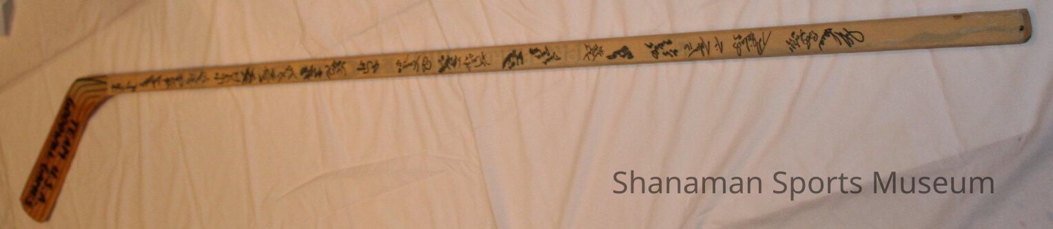 A Koho hockey stick was autographed by members of the 1990 United States Winter Goodwill Games ice hockey team.