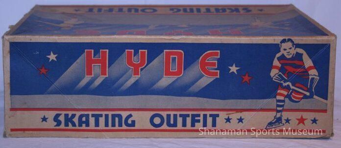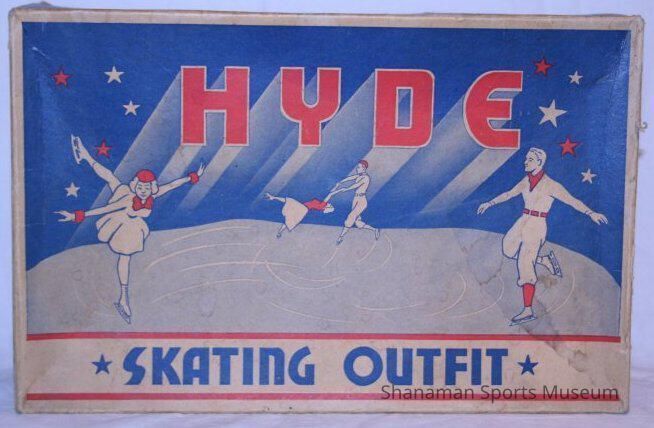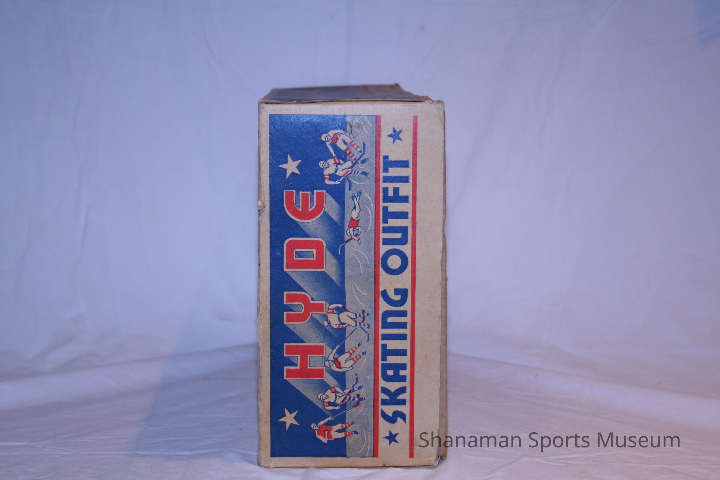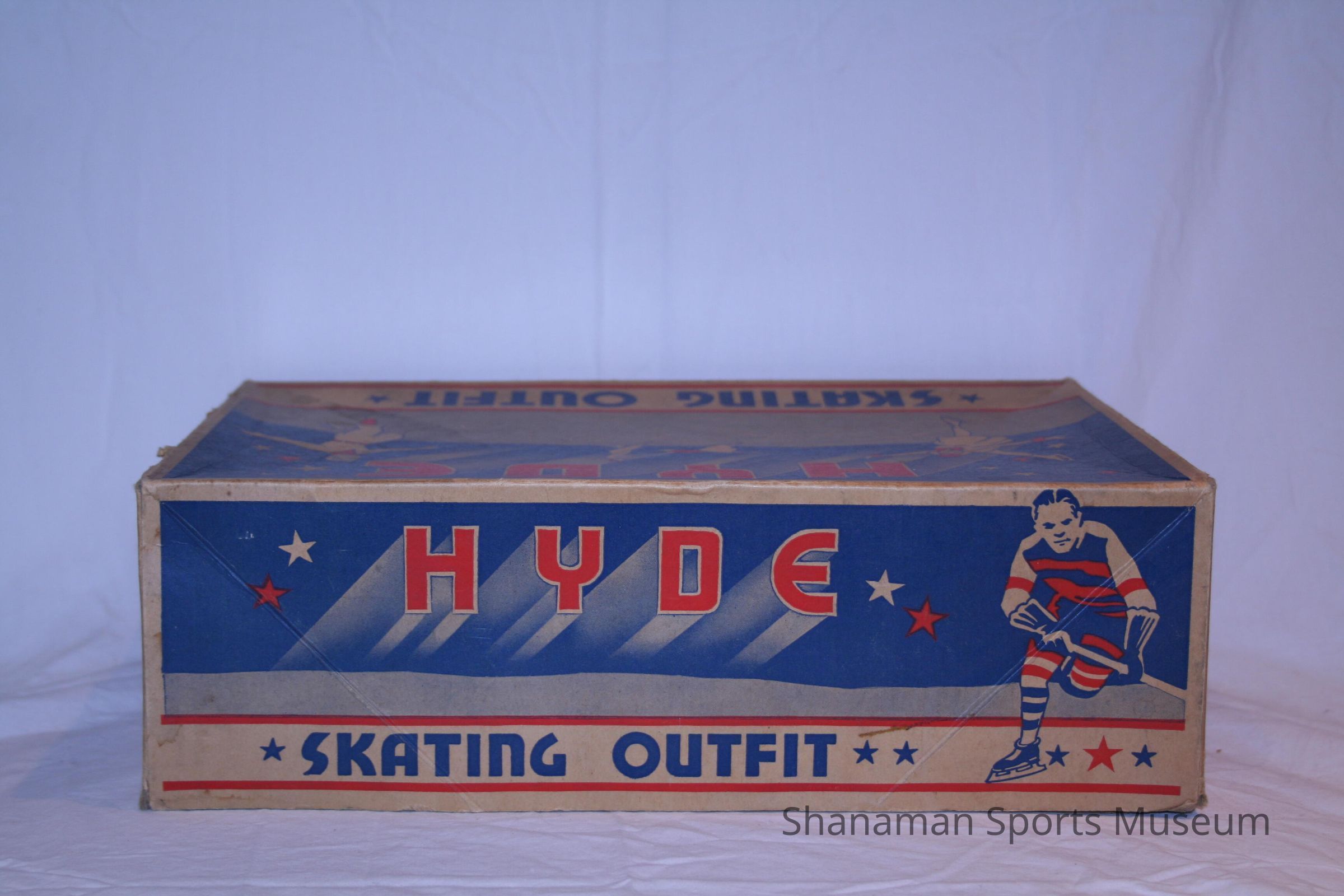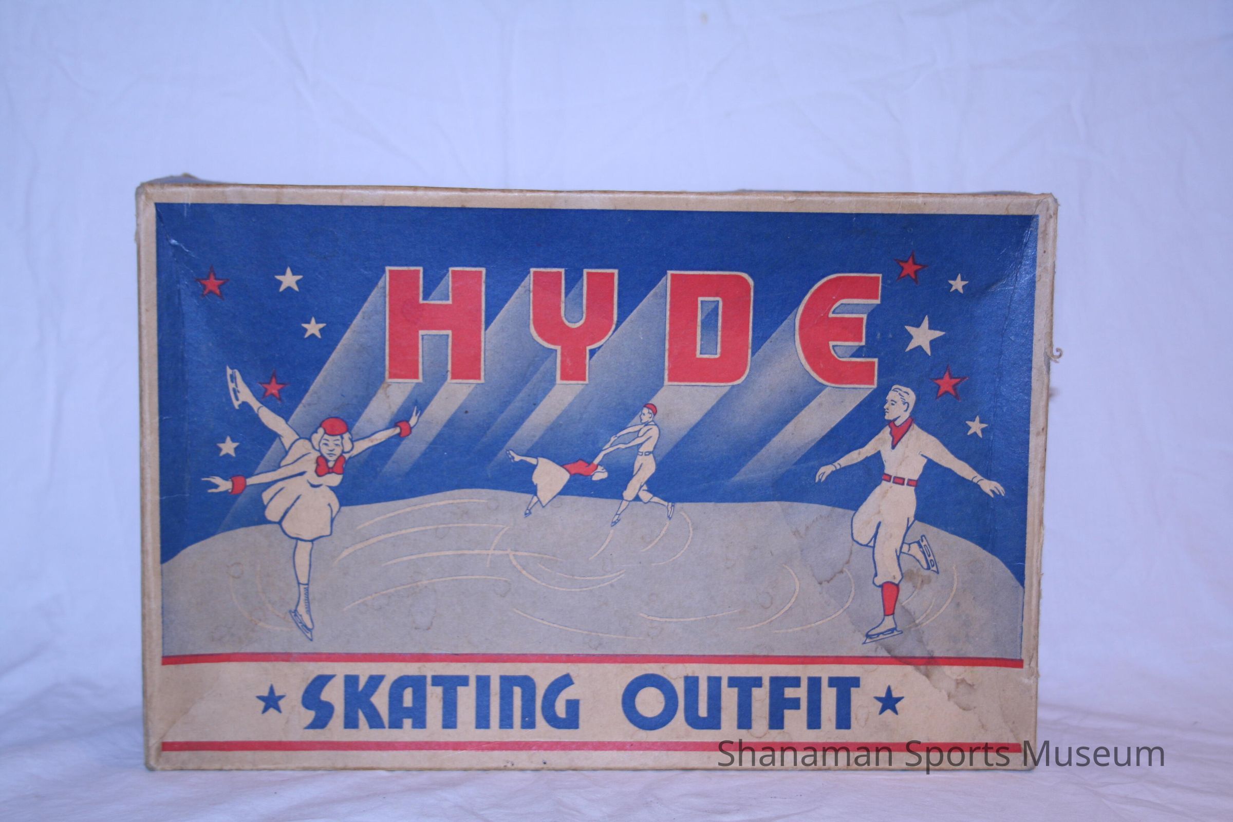 A colorful red and blue box for a Hyde Figure Skating Outfit can be seen in this photo. Figure skating was, and remains, a popular sport and was especially a favorite of residents of Lakewood and Tacoma who had the good fortunate to skate at the Lakewood Ice Arena. The ice arena was the entertainment hub from its opening in 1938 until 1982 when part of the building collapsed and the rest was demolished.Lexicon