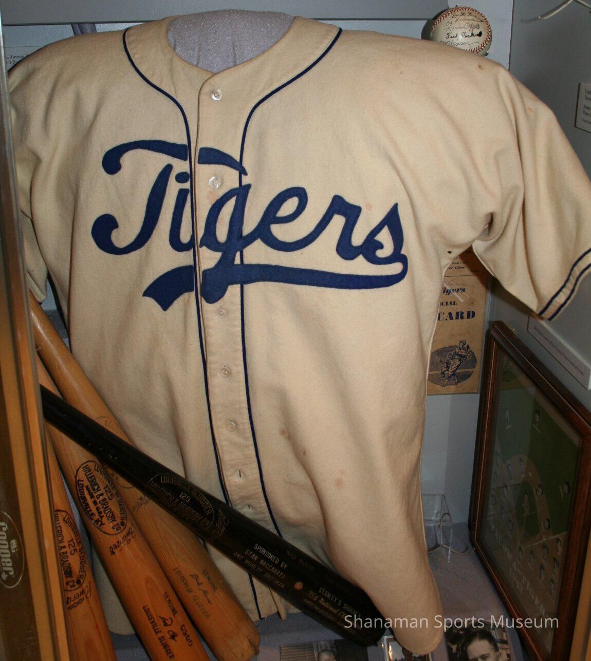 This Tacoma Tigers jersey dates back to the 1947 season, when the Tacoma Tigers posted a record of 72-81, finishing sixth in the Western International league. Competing in the class B WIL, and affiliates to the Chicago Cubs, Tacoma was Lead by Glen Setter, who batted an average of .351, Dick Greco who lead the team in home runs with 21, and, Earl Kuper who had a batting average of .389 and won the league’s batting crown. The white, wool uniform has blue trim, with “Tigers” in a sleek dark blue across the chest. The game worn jersey was worn by an unknown player on the 1947 team, the bottom of the jersey contains authentic wear and tear from being worn in game.Lexicon
