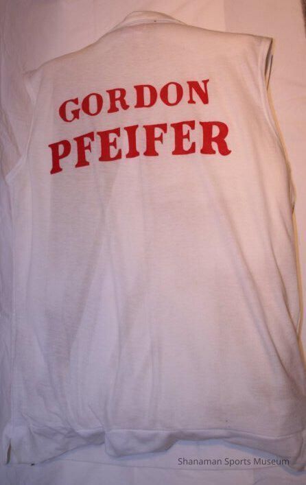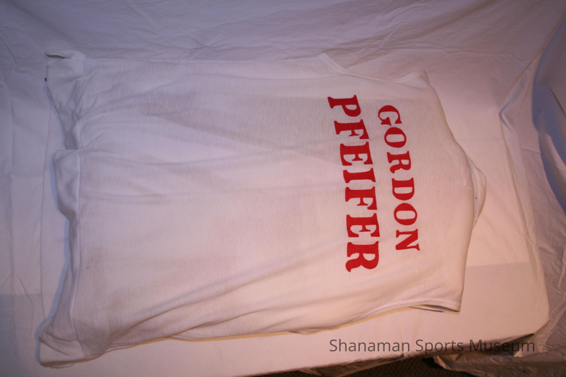 This size large sleeveless shift was worn by Tacoma’s Gordy Pfeifer while competing in the first pro handball tournament held in the United States in Aurora, Ill., in 1974.