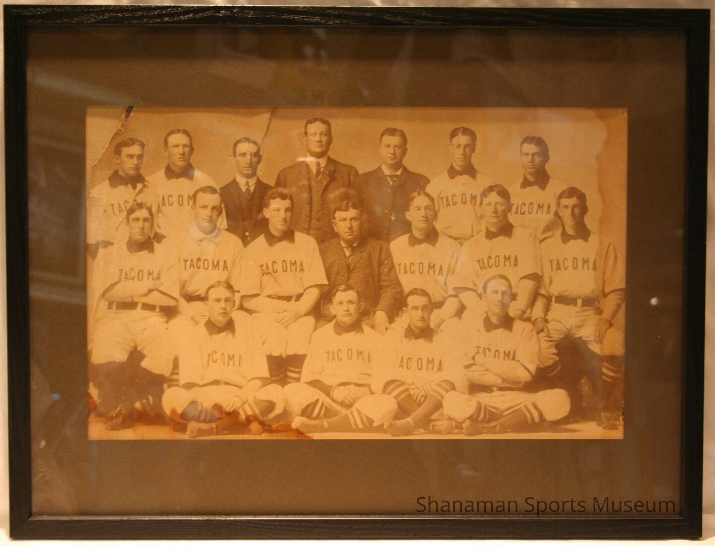 Players from the 1904-05 Tacoma Tigers wearing their uniforms get a team picture taken. The Tacoma Tigers were members of the Pacific Coast League in 1904 and half of 1905. The Tigers had moved from Sacramento to Tacoma after the 1903 season. And it didn't take the Tacoma Tigers long to adjust to their new home. In 1904, the Tigers won Tacoma's first PCL pennant, finishing seven games ahead of runner-up Los Angeles Angels.Lexicon