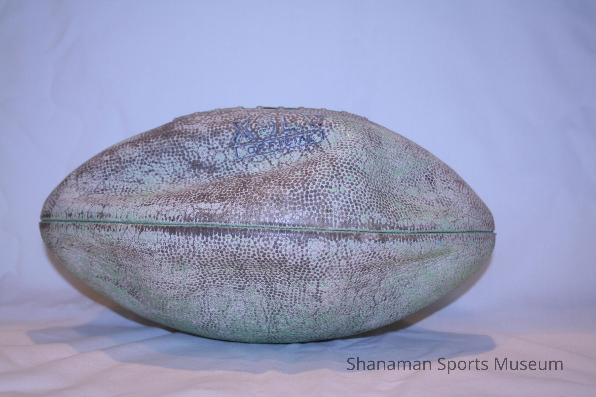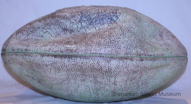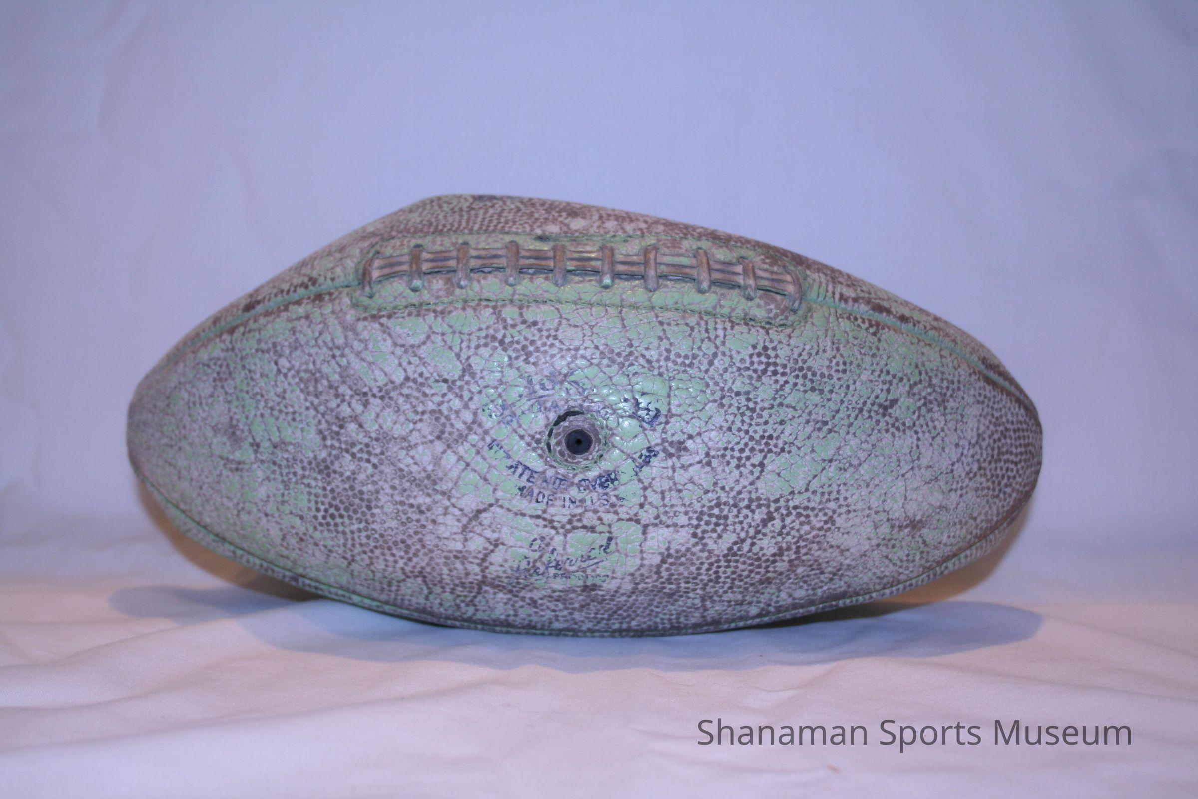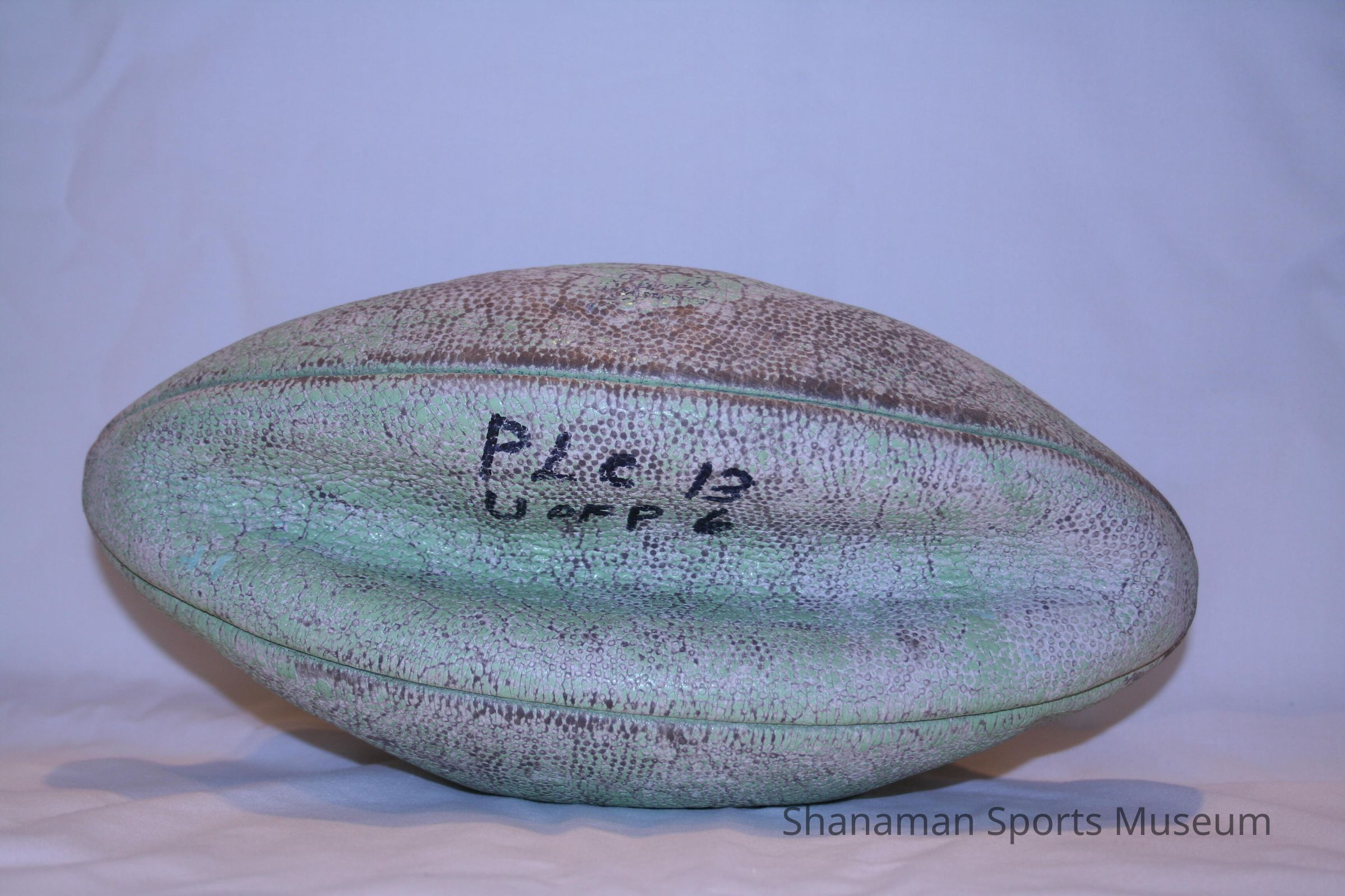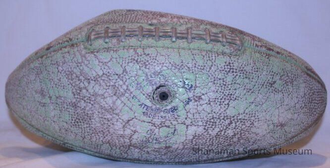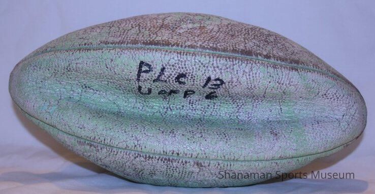 *INC* Football used in 1941 when Pacific Lutheran College defeated College of Pacific, 13-6. P.L.C. was led by Ma