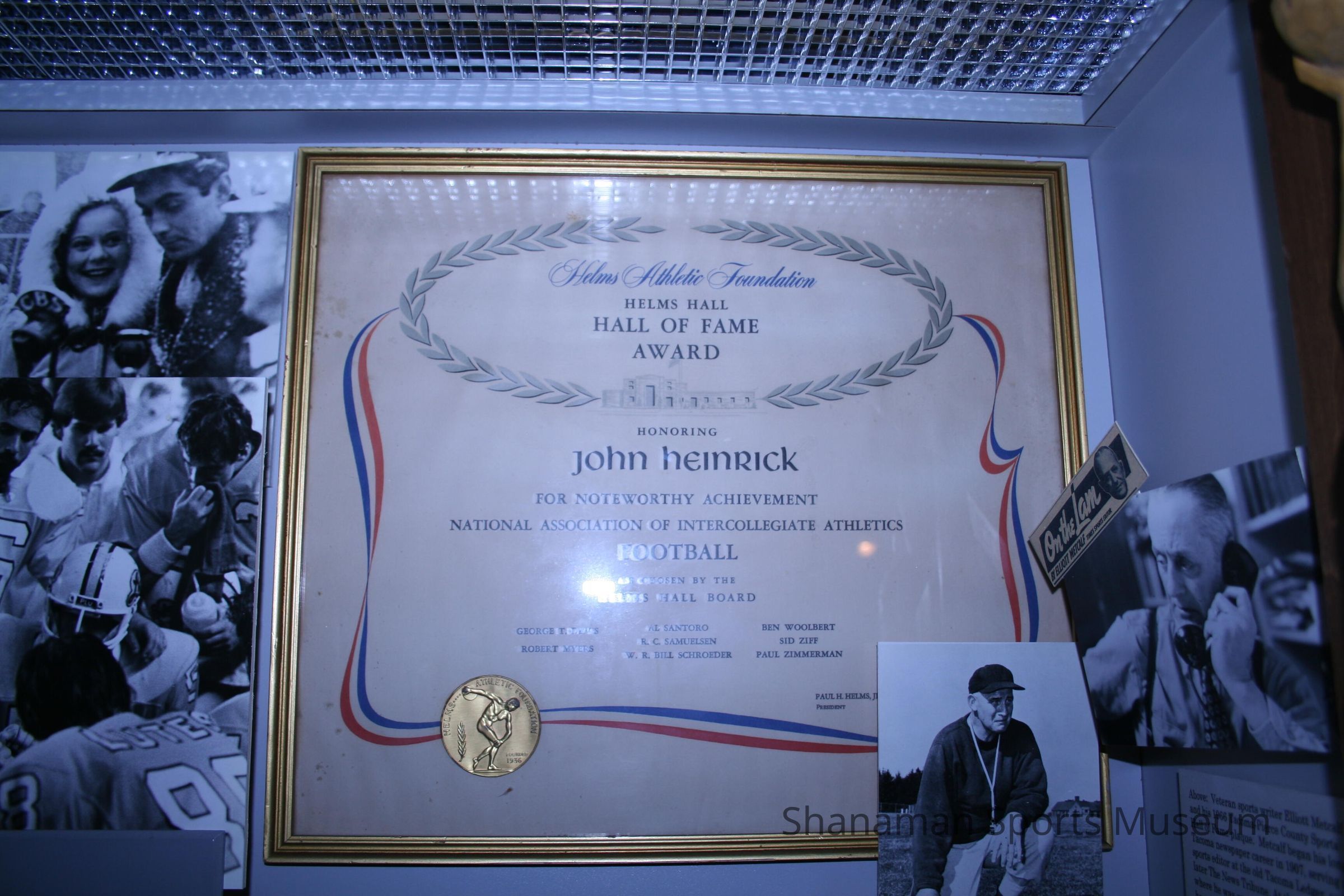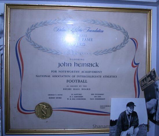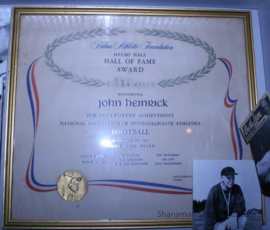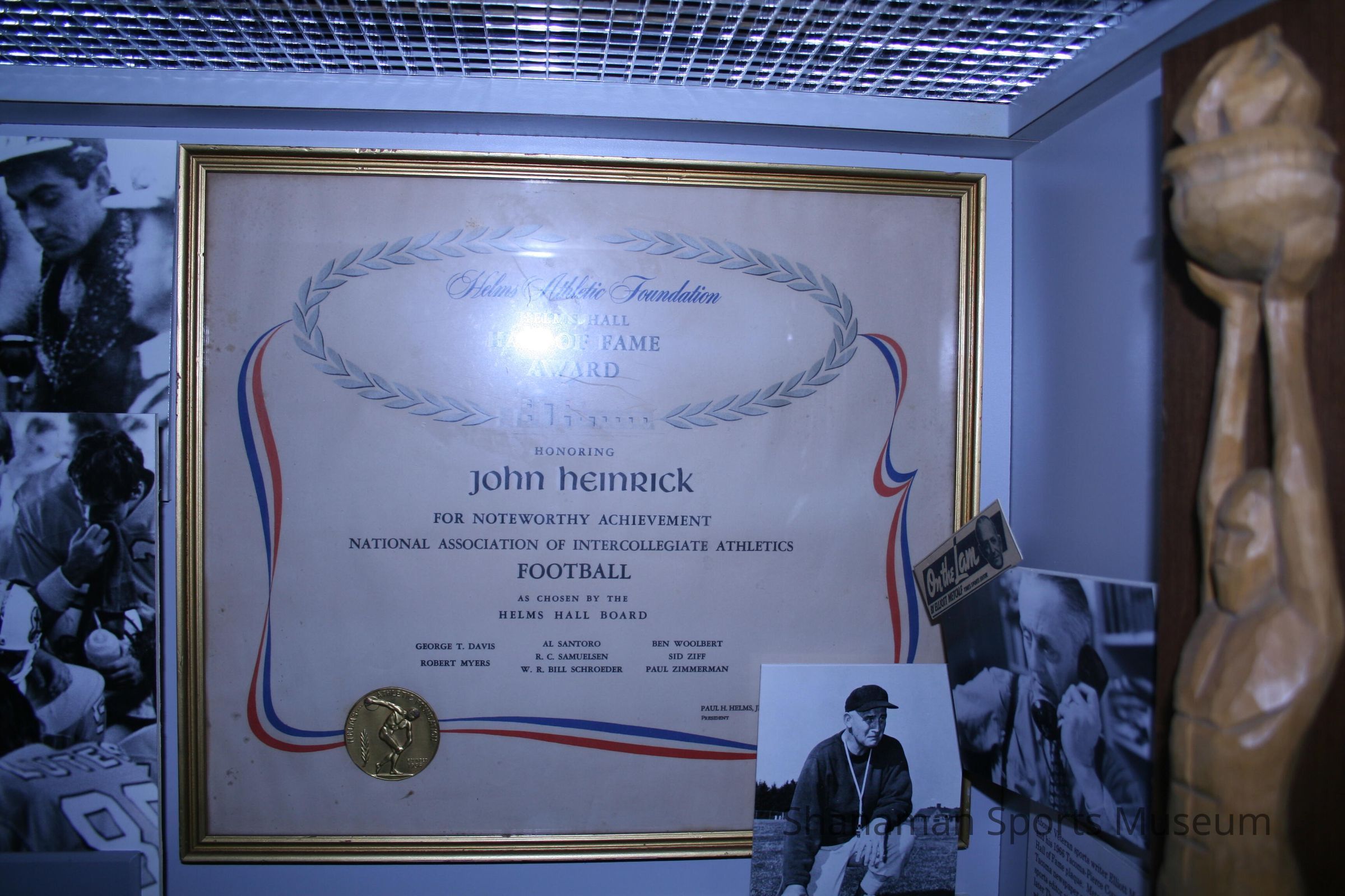 Plaque from the Helms Athletic Foundation that was awarded to John Heinrick upon his induction into the NAIA