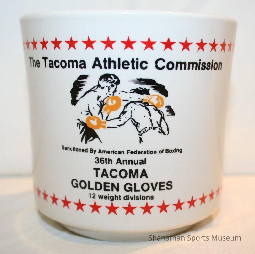This mug was among eight presented to honorees at the 32nd annual Tacoma Golden Gloves on Feb. 16, 1980 at the University of Puget Sound Fieldhouse. This mug honored Ray Kelly, who owned a boxing gym on Commerce Street.