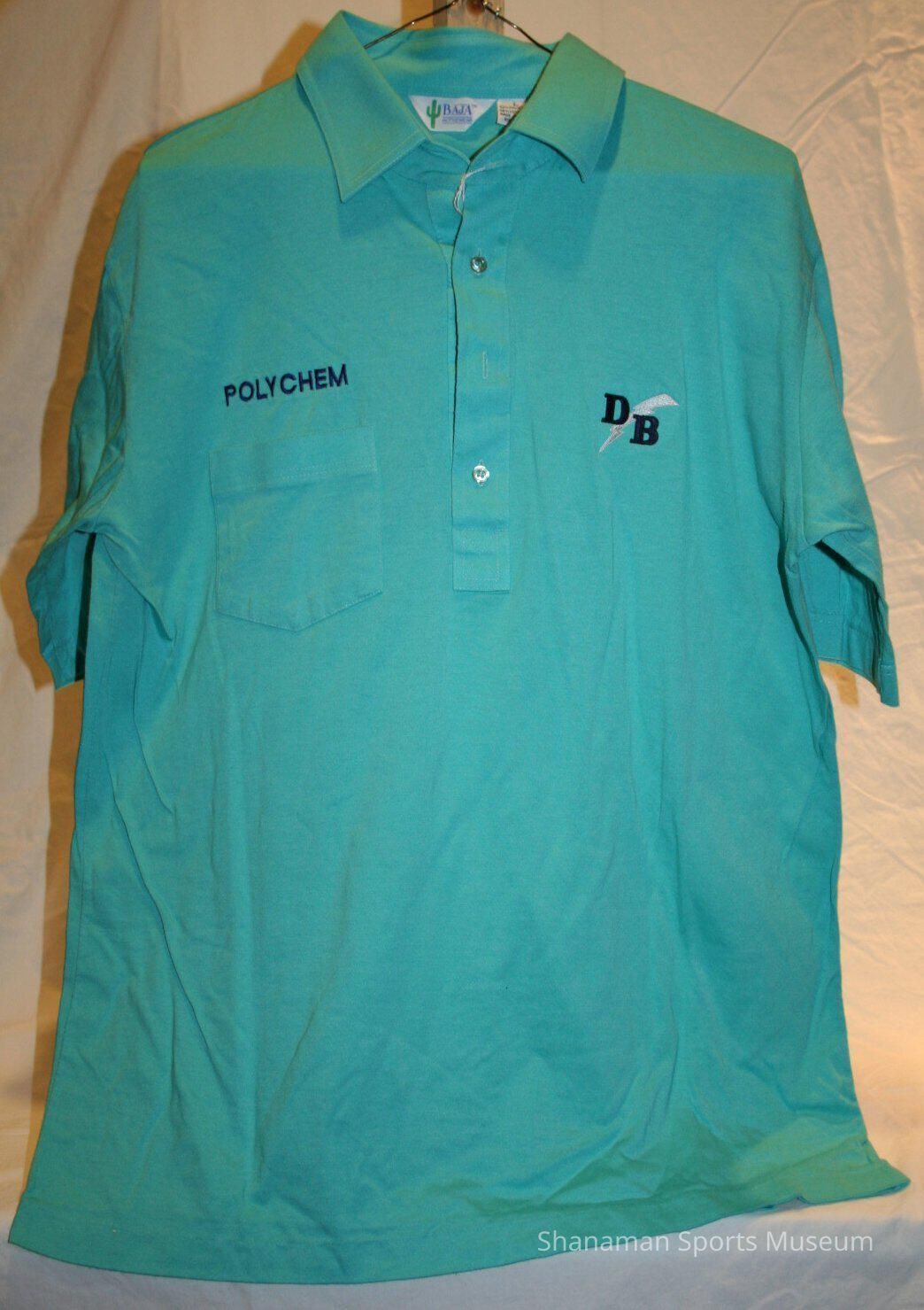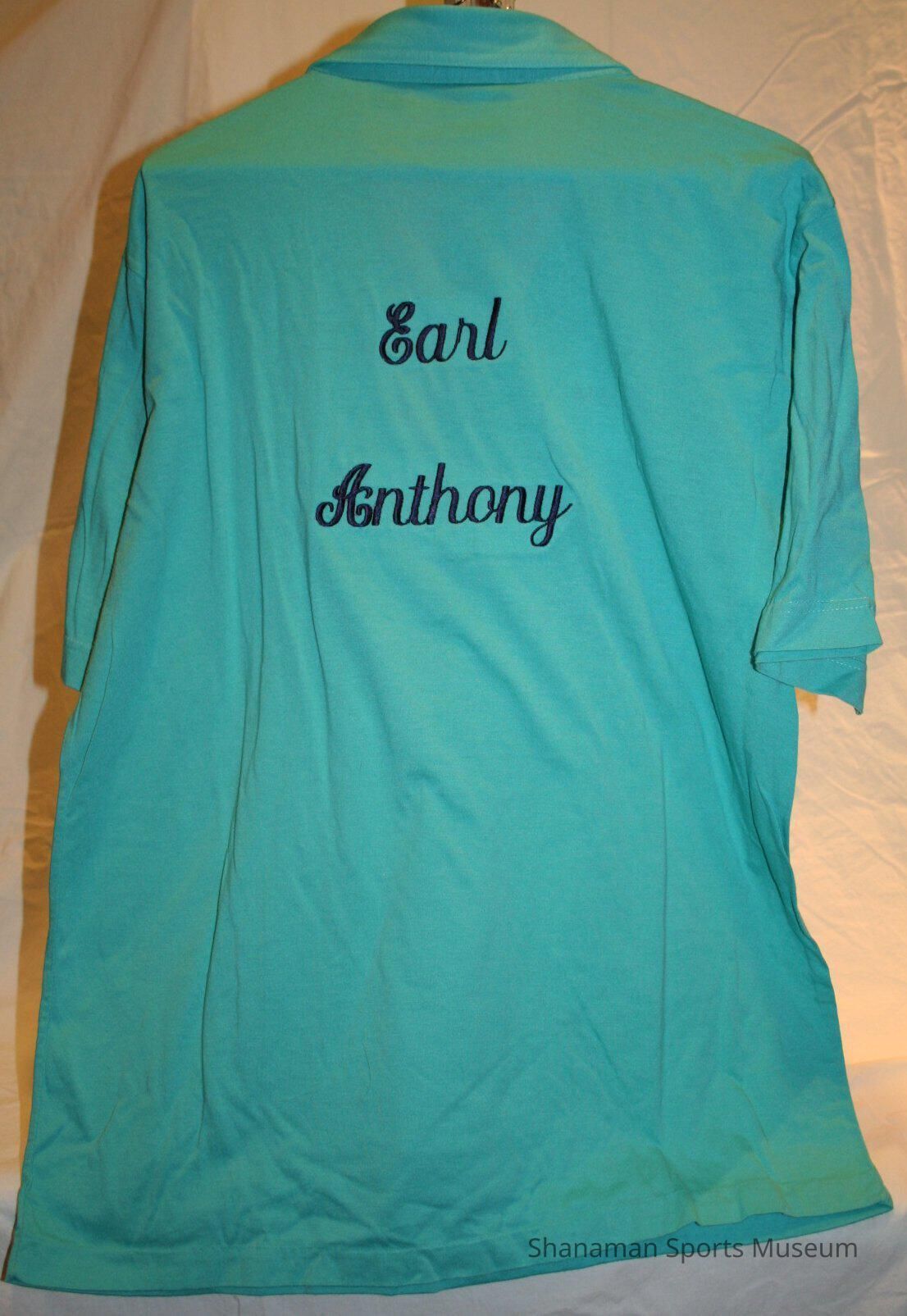 This turquoise-colored shirt was worn by Earl Anthony, a Kent native, during his last competition Flint, Michigan. Anthony was regarded as the best bowler in his era, winning 43 Professional Bowling Association (PBA) tour titles which ranks him second behind Walter Ray Williams Jr. Anthony held the record for more than 30 years until it was broken by Williams. Anthony won 10 Major titles including three-straight PBA National Championships from 1973-75 and 1981-83. He was the first player to earn $100,000 in a season and earned over $1.4 million in his career. Anthony was inducted into the PBA Hall of Fame in 1981. Before becoming a professional bowler, Anthony played baseball in the Air Force then earned a tryout with the Baltimore Orioles’ farm team in Vancouver of the Pacific Coast League. He injured his ankle covering first base and after receiving a reduced offer decided to go home. Anthony was driving a fork lift at a supermarket in Tacoma when friends asked him to join a bowling league after work. He soon hit a 185 average and then topped 200. He bowled locally before joining the PBA briefly in 1963 and again in 1969. He won at Seattle in 1970 and in New York the following year and stuck with the tour.