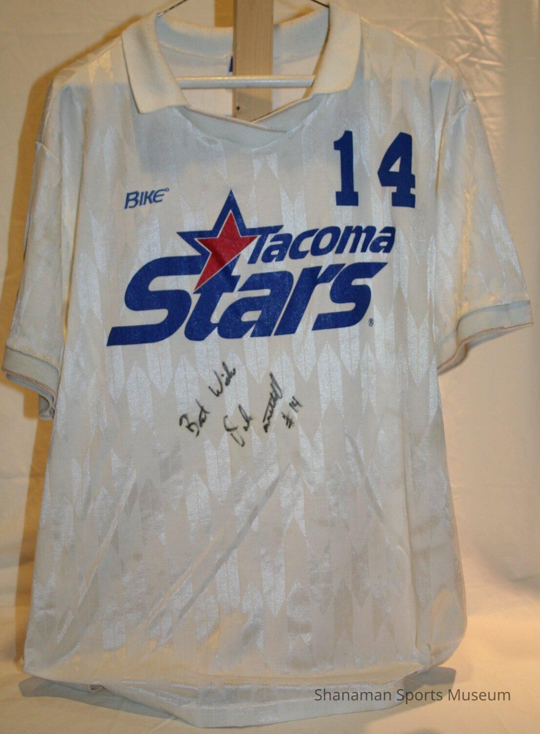 Tacoma Stars forward Dale Mitchell autographed his No. 14 white jersey from the 1990-91 season.
