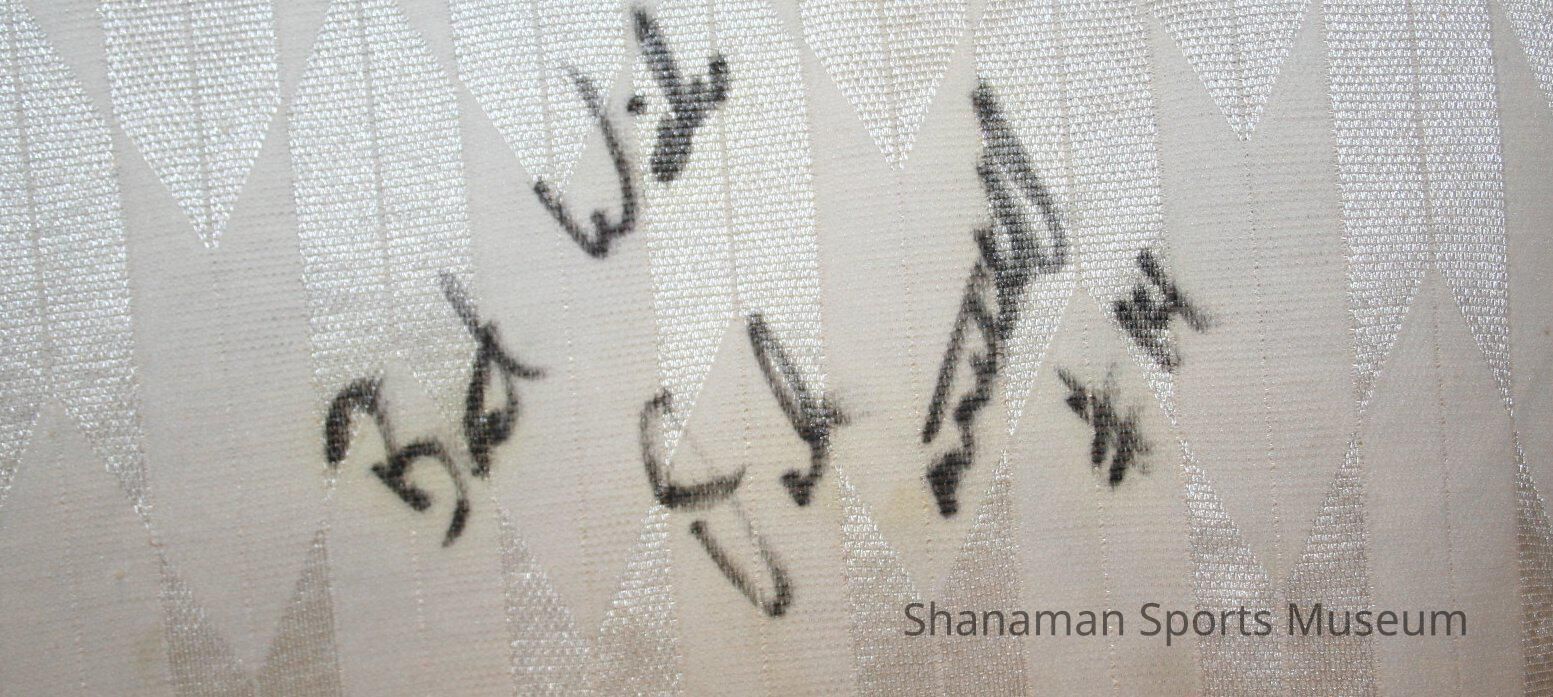 Mitchell signed, "Best Wishes, Dale Mitchell #14" on the front of the jersey below the Stars logo.