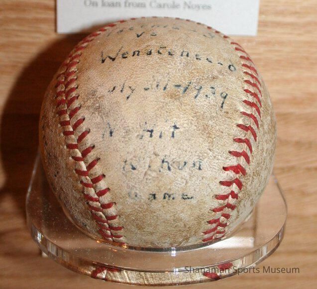 A baseball from “Lefty” Isekite’s no-hitter in 1937 is displayed in a clear acrylic holder. Floyd “Lefty” Isekite was a dominant left-handed pitcher for the Tacoma Tigers in the Western International League in the 1930s. Isekite threw the no-hitter against the Wenatchee Chiefs on July 11, 1937, a 1-0 victory for the Tigers.